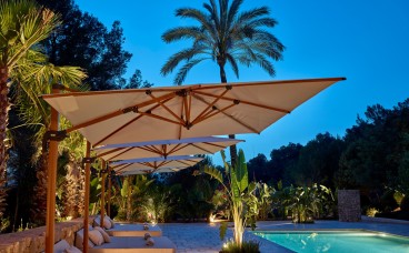 En el exterior, la protagonista es la piscina climatizada de 80 m², rodeada de plantas tropicales, hamacas y una cocina exterior con barbacoa de gas, nevera y zona de comedor para 12 personas. Al caer la tarde, la iluminación ambiental crea una atmósfera mágica.