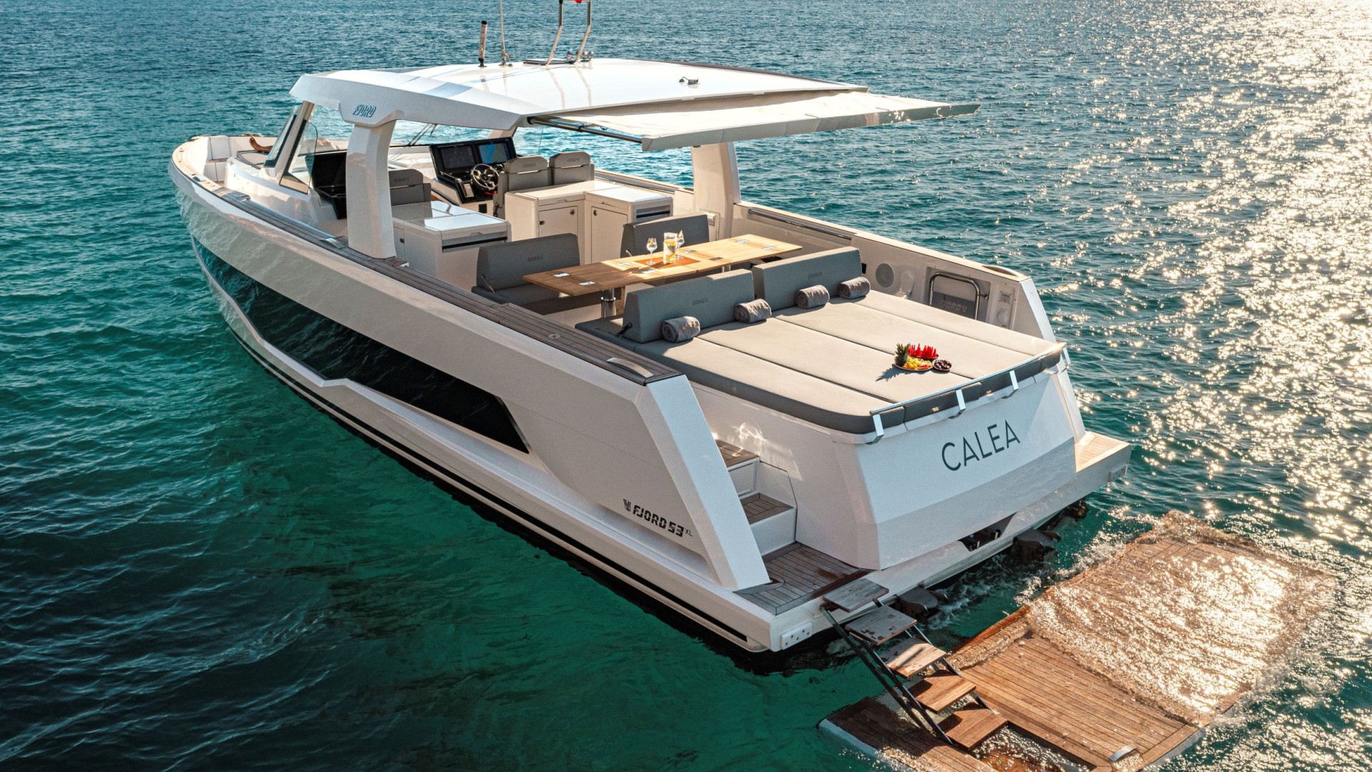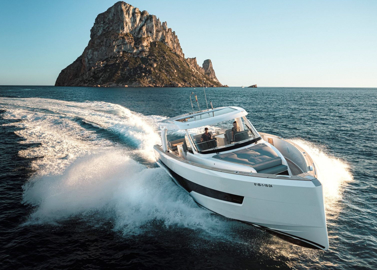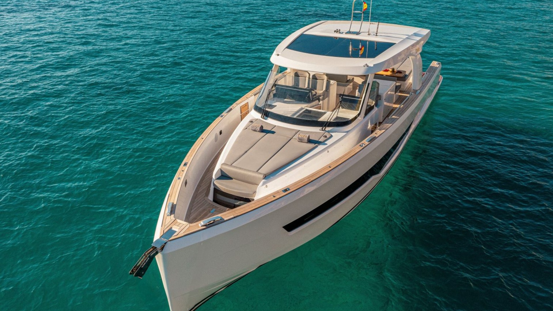 Con su imponente casco blanco y sus líneas puras de diseño escandinavo, este yate es la elección predilecta para quienes buscan exclusividad y un confort inigualable mientras navegan hacia las aguas cristalinas de Formentera. Su diseño walk-around permite una libertad de movimiento total, convirtiendo la cubierta en una auténtica terraza privada sobre el Mediterráneo.