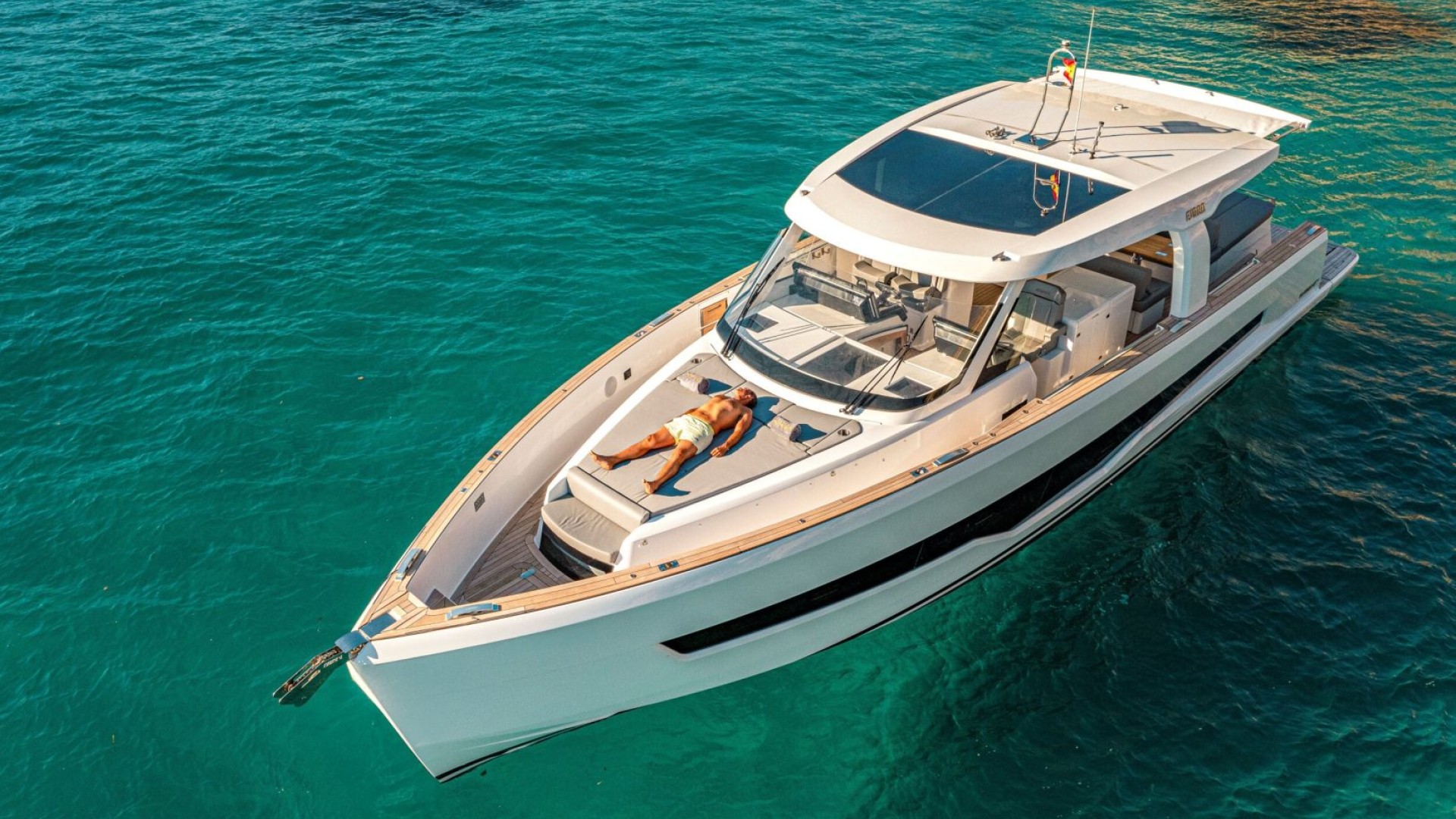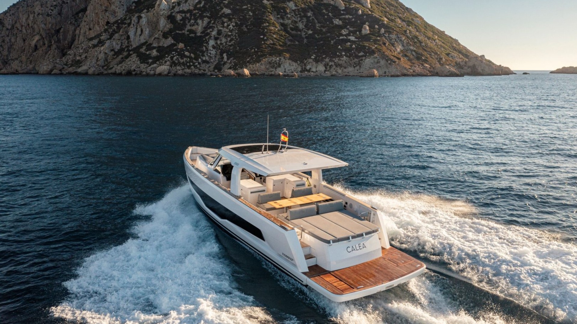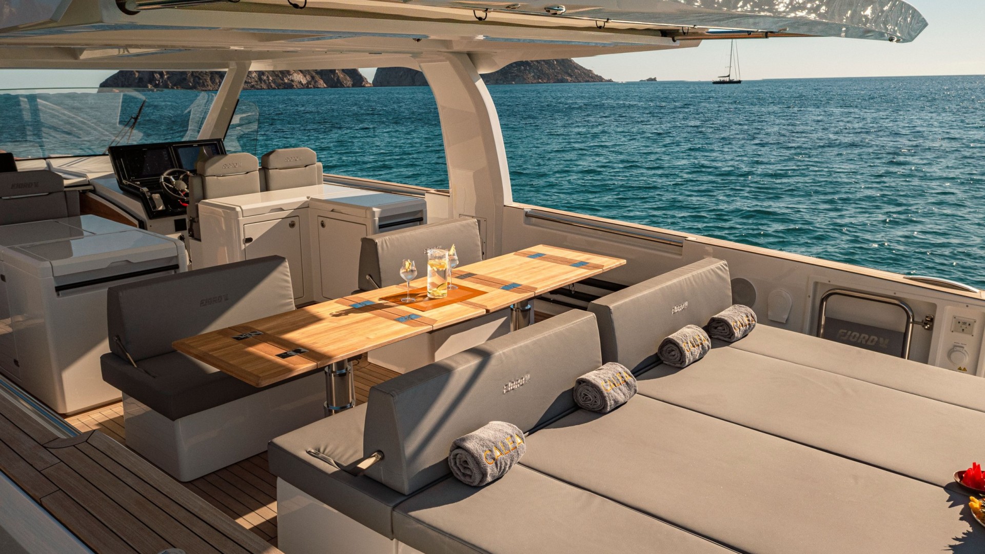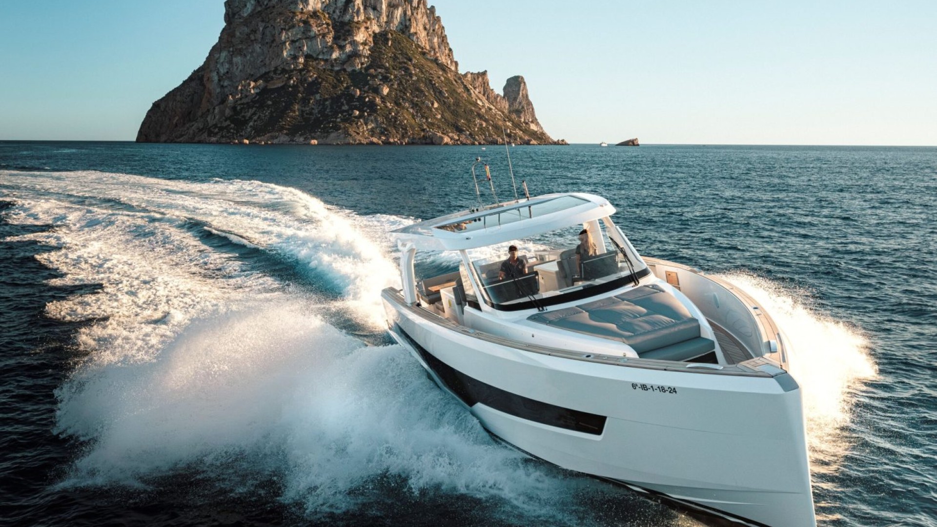 Con su imponente casco blanco y sus líneas puras de diseño escandinavo, este yate es la elección predilecta para quienes buscan exclusividad y un confort inigualable mientras navegan hacia las aguas cristalinas de Formentera. Su diseño walk-around permite una libertad de movimiento total, convirtiendo la cubierta en una auténtica terraza privada sobre el Mediterráneo.
