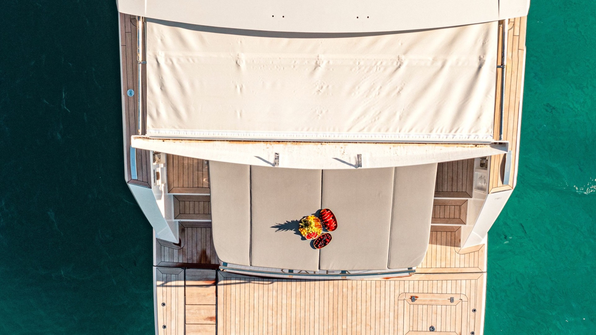 Plataforma Hidráulica: Un acceso al agua de nivel superior. La plataforma se sumerge para facilitar el baño o para disfrutar de los juguetes acuáticos, como el Seabob o el Paddle Surf, con total comodidad.