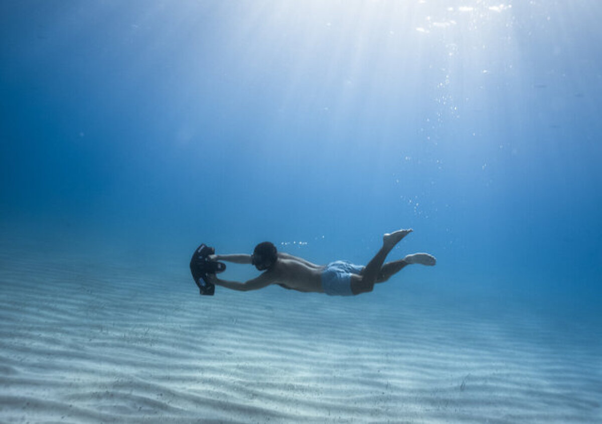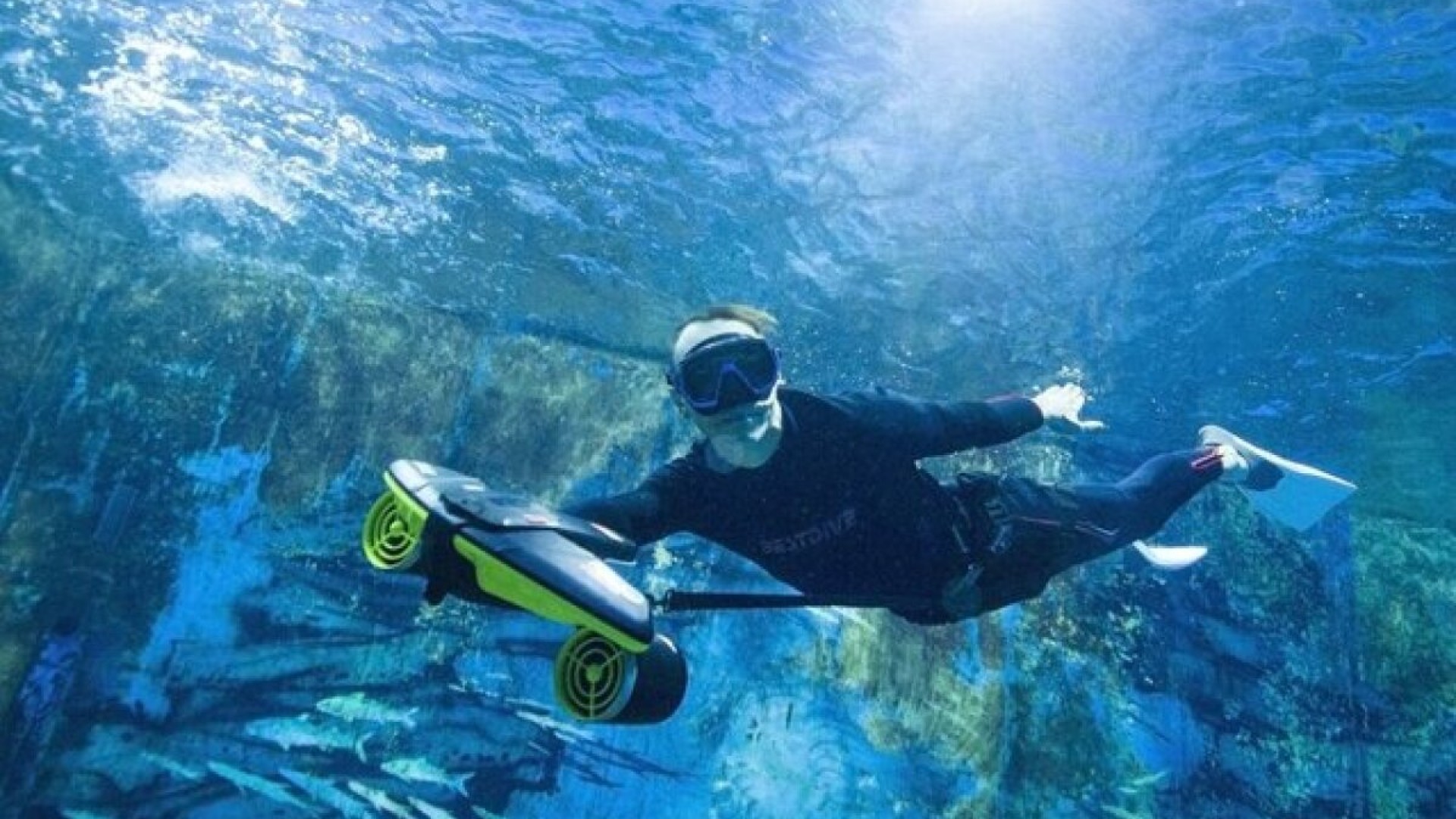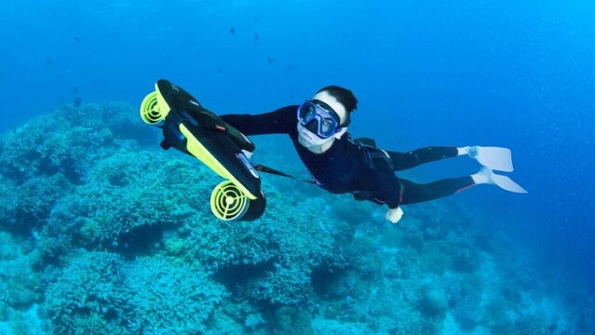 Disfruta del nuevo juguete acuático de moda.3 velocidades, eco – standard – sport. Velocidad de 7,5km/hora debajo del agua.Sumergible a 40 metros.Posibilidad de incorporar Go pro