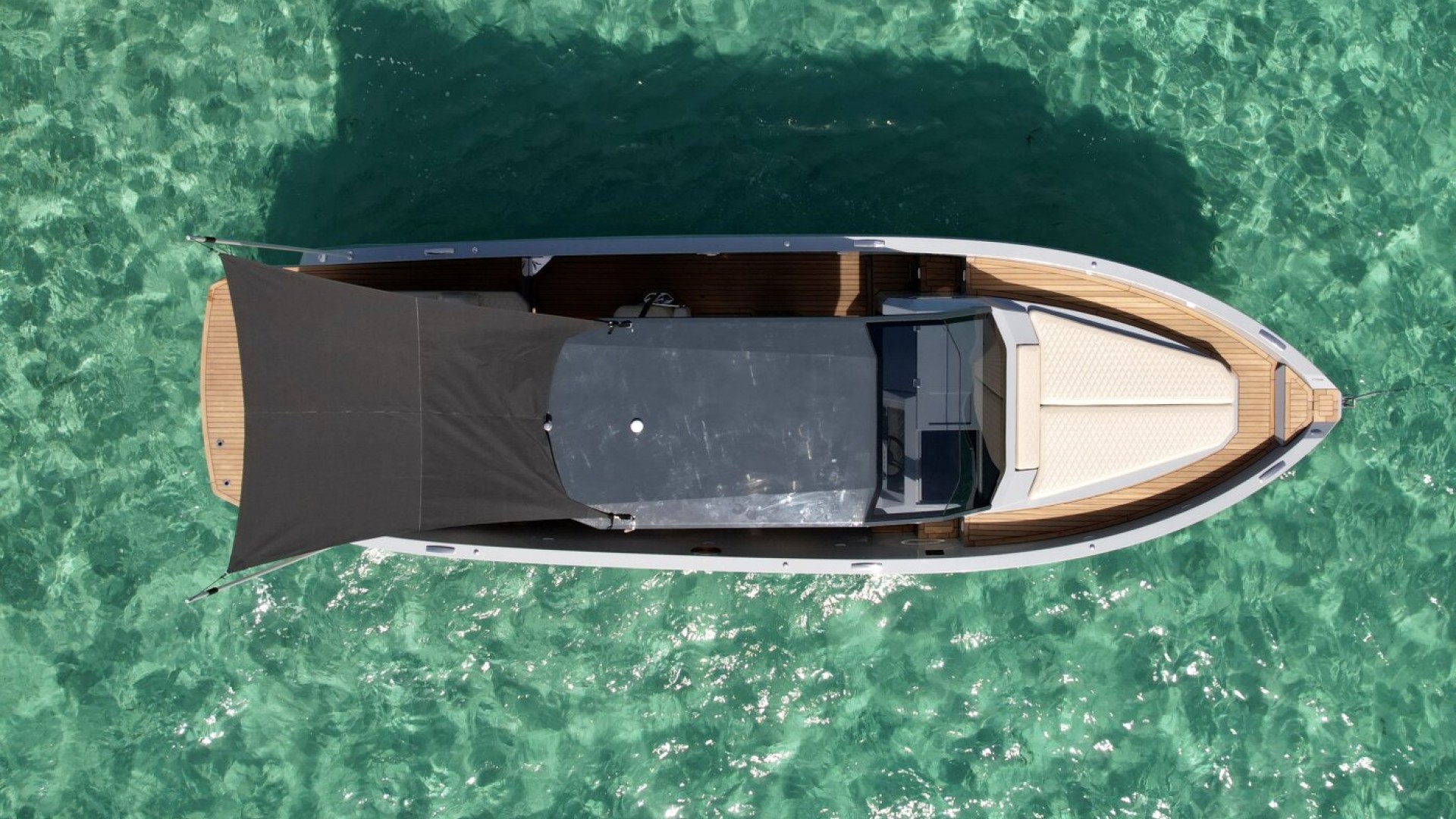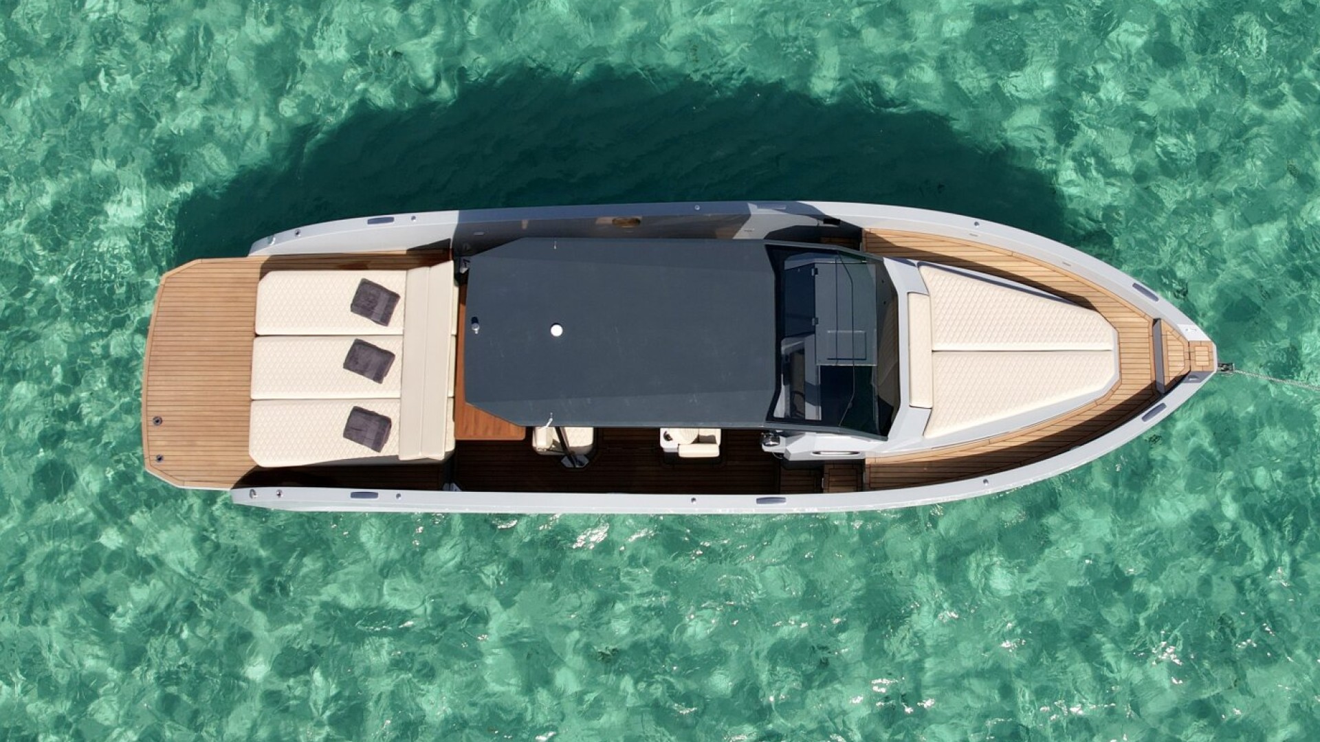 Confort Bajo el Sol: El moderno T-Top rígido con parabrisas integrado no solo aporta un look deportivo, sino que protege la zona de comedor y cocina exterior, permitiéndote disfrutar de un almuerzo a la sombra con total comodidad.
