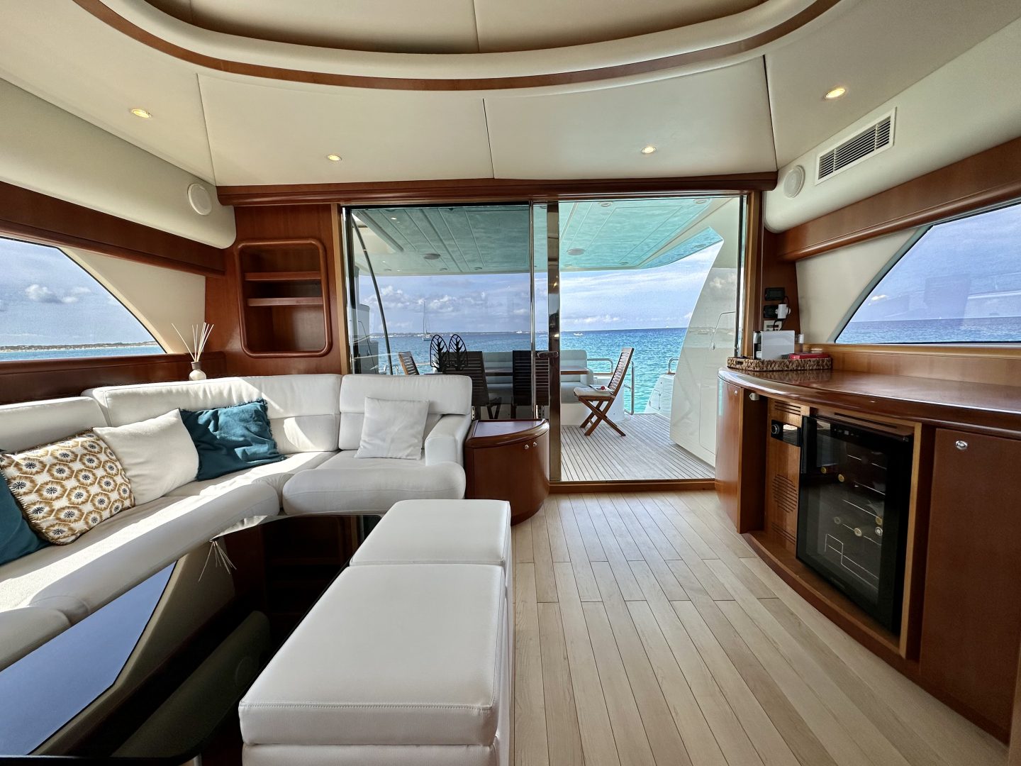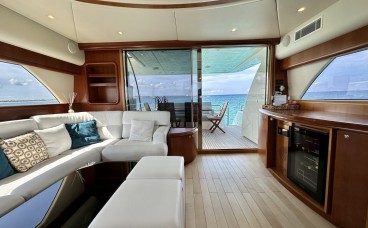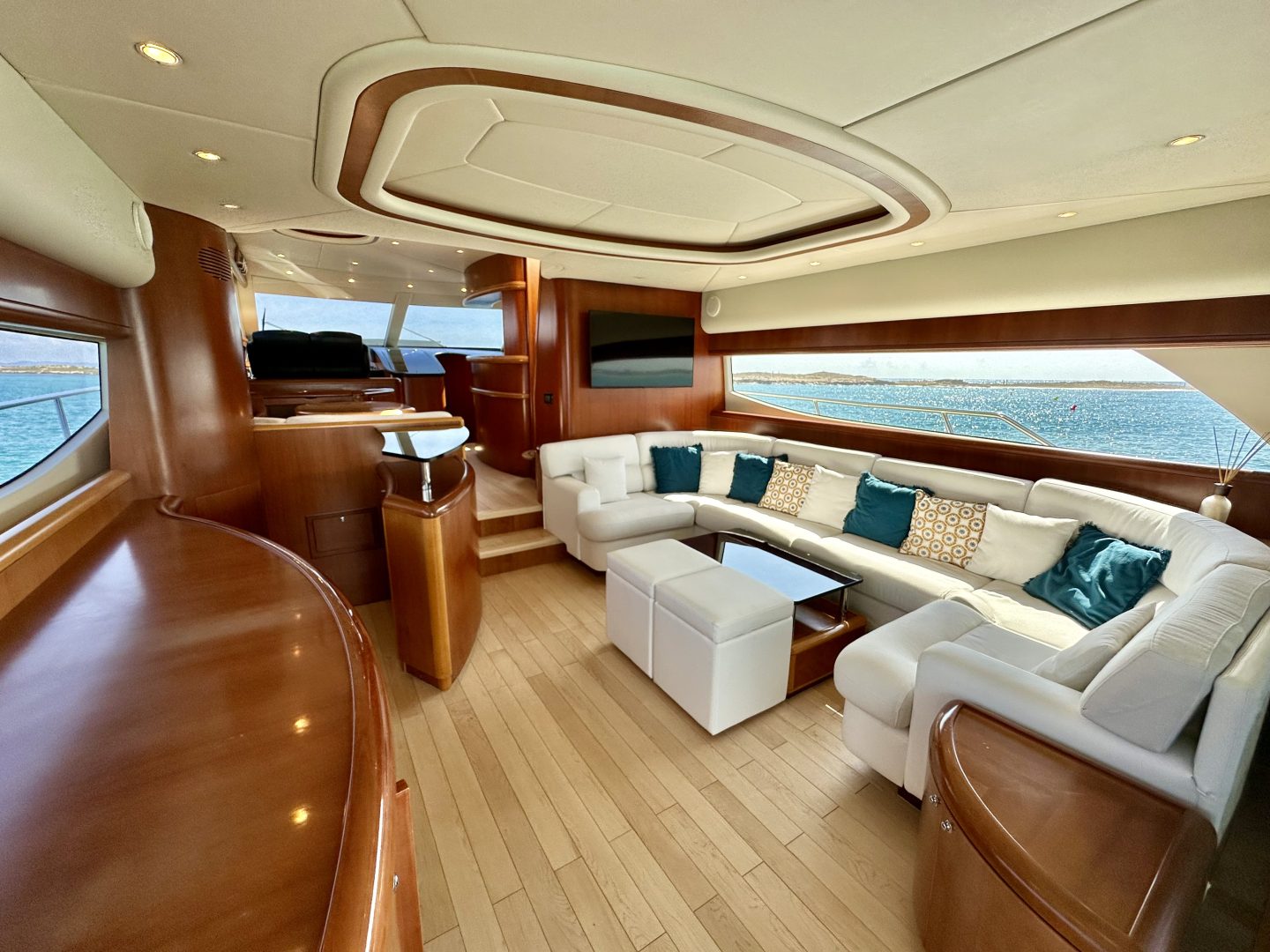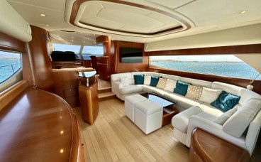 Acabados de Lujo: Su interior destila clase con maderas nobles, suelos de mármol y una vinoteca privada, creando una atmósfera sofisticada y acogedora para tus cenas a bordo o reuniones de negocios.