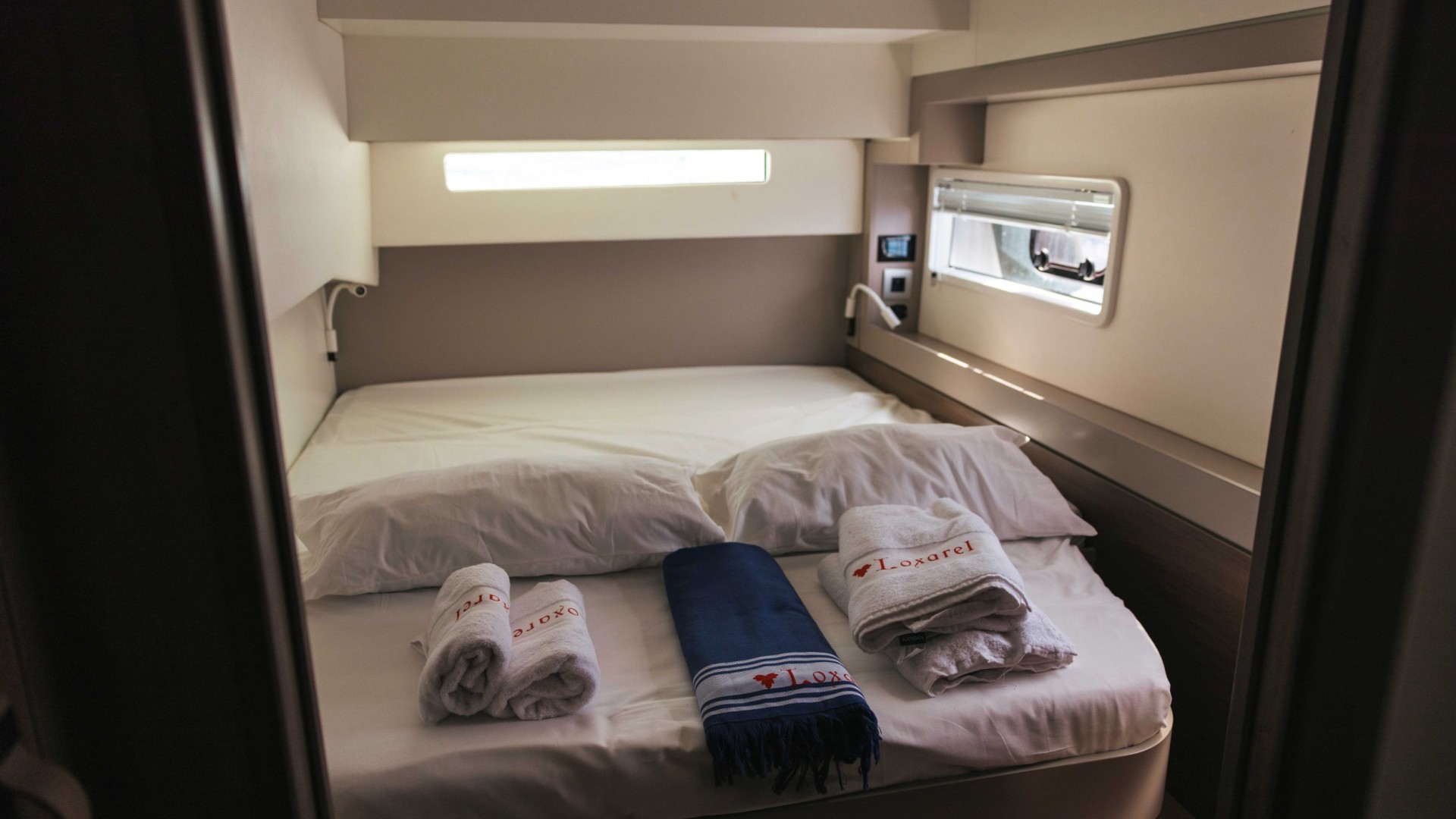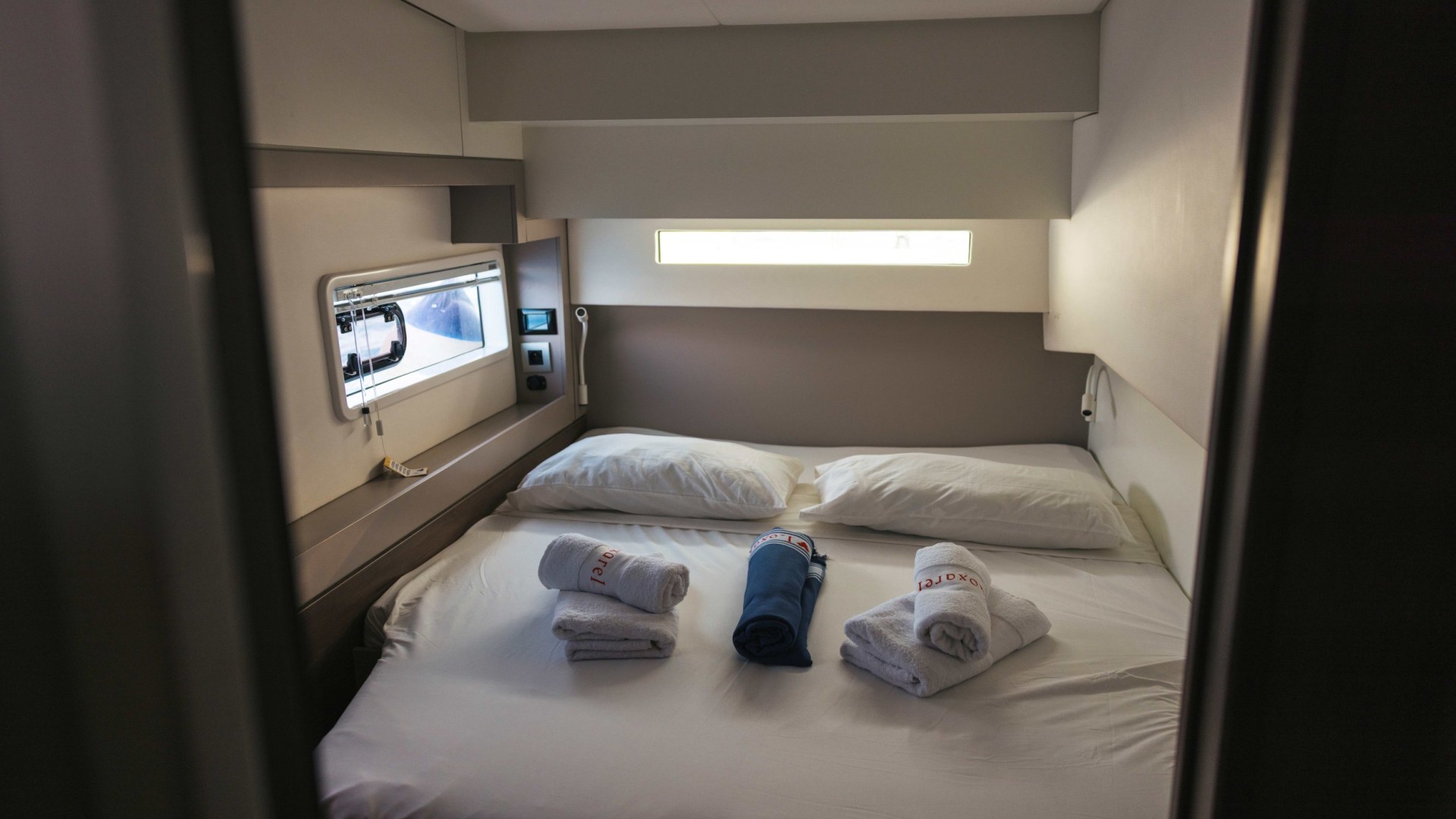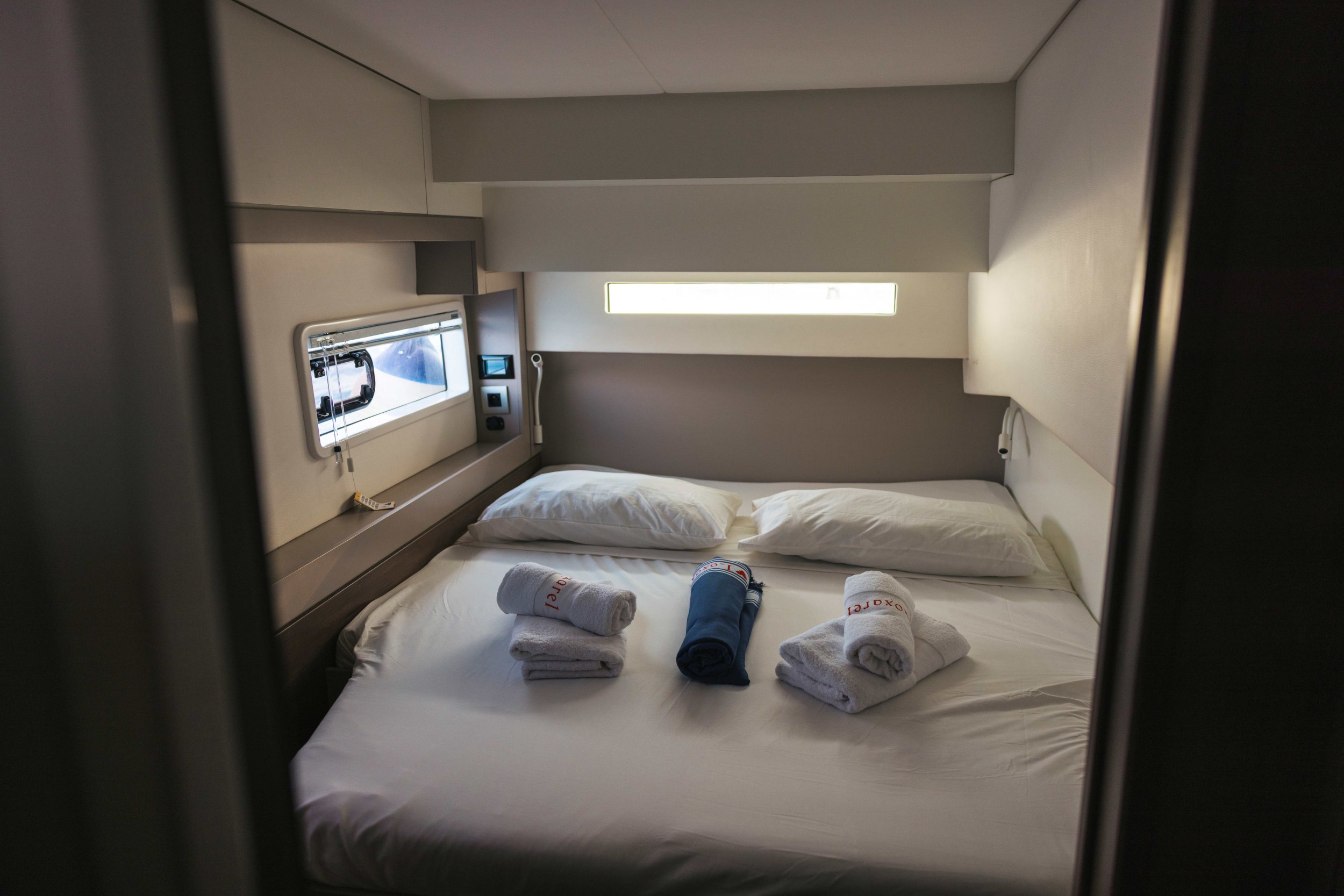 Autonomie et Stabilité : Avec une longueur hors-tout de 12,85 mètres et un maître-bau généreux de plus de 7 mètres, il offre une stabilité exceptionnelle au mouillage, idéale pour ceux qui recherchent une détente absolue sans le roulis d’un monocoque.