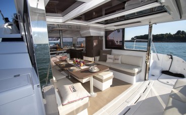 Innovation « Open Space »: Oubliez les barrières. Sa célèbre porte oscillante « style garage » permet au carré et au cockpit arrière de devenir un seul espace géant et ventilé en quelques secondes. C’est comme avoir un salon avec une vue infinie sur l’océan !