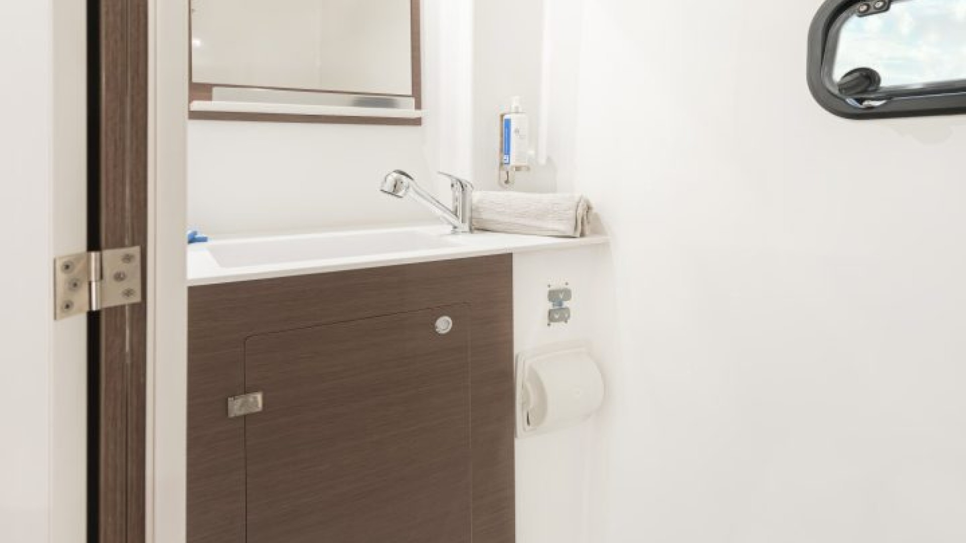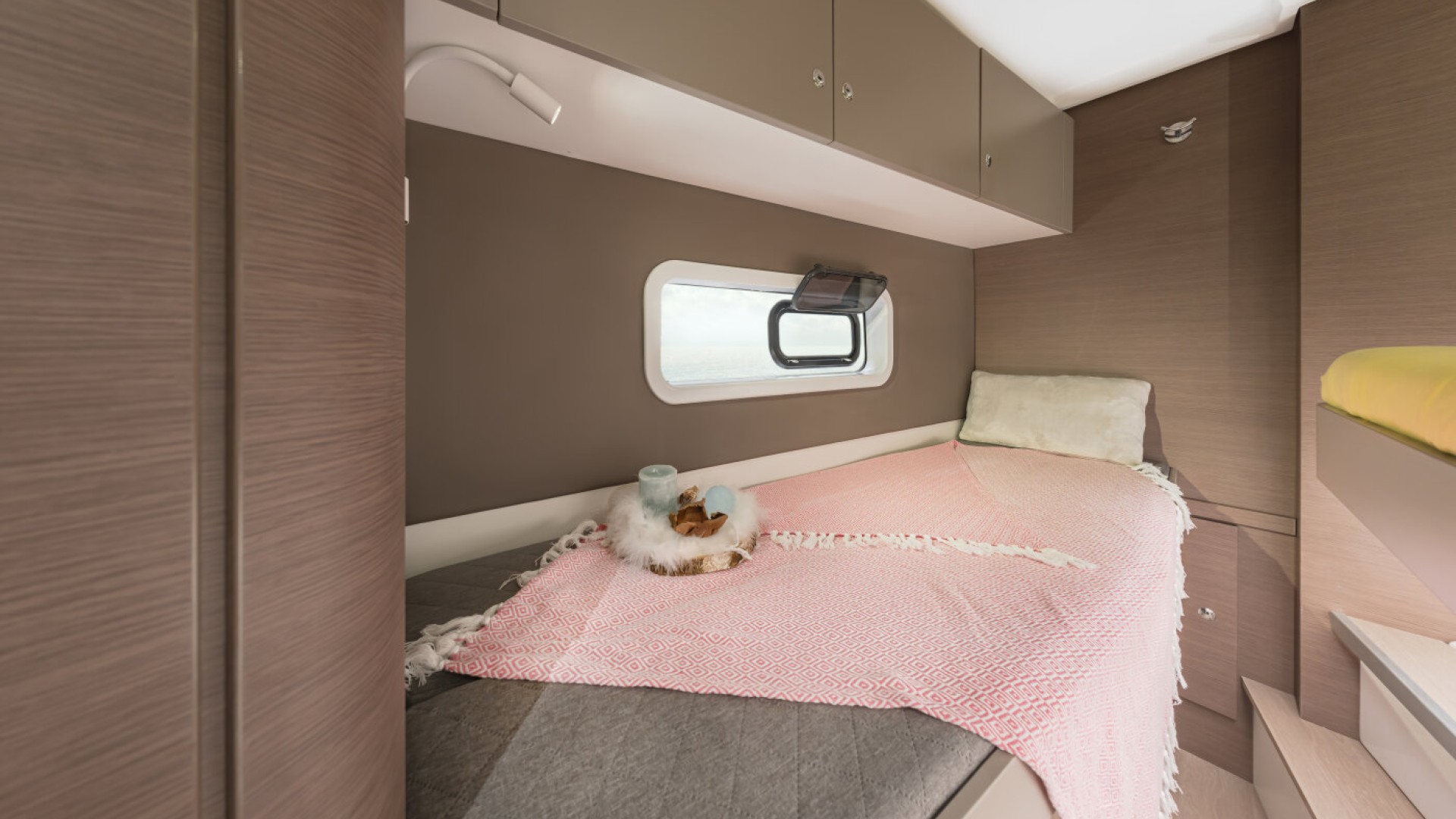 Confort de Première Classe: Comme vous pouvez le voir sur les images, les cabines sont conçues avec une élégance minimaliste et maximisent la lumière naturelle. C’est le premier catamaran de sa longueur à proposer des lits transversaux avec vue sur mer, pour que vous vous réveilliez chaque jour dans un paradis différent.