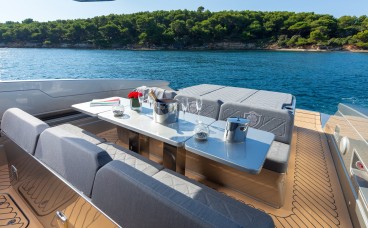 Ampleur du Pont : Il dispose d’un bain de soleil généreux à la proue et d’un cockpit à l’arrière idéal pour les déjeuners en plein air, maximisant le plaisir du soleil des Baléares.