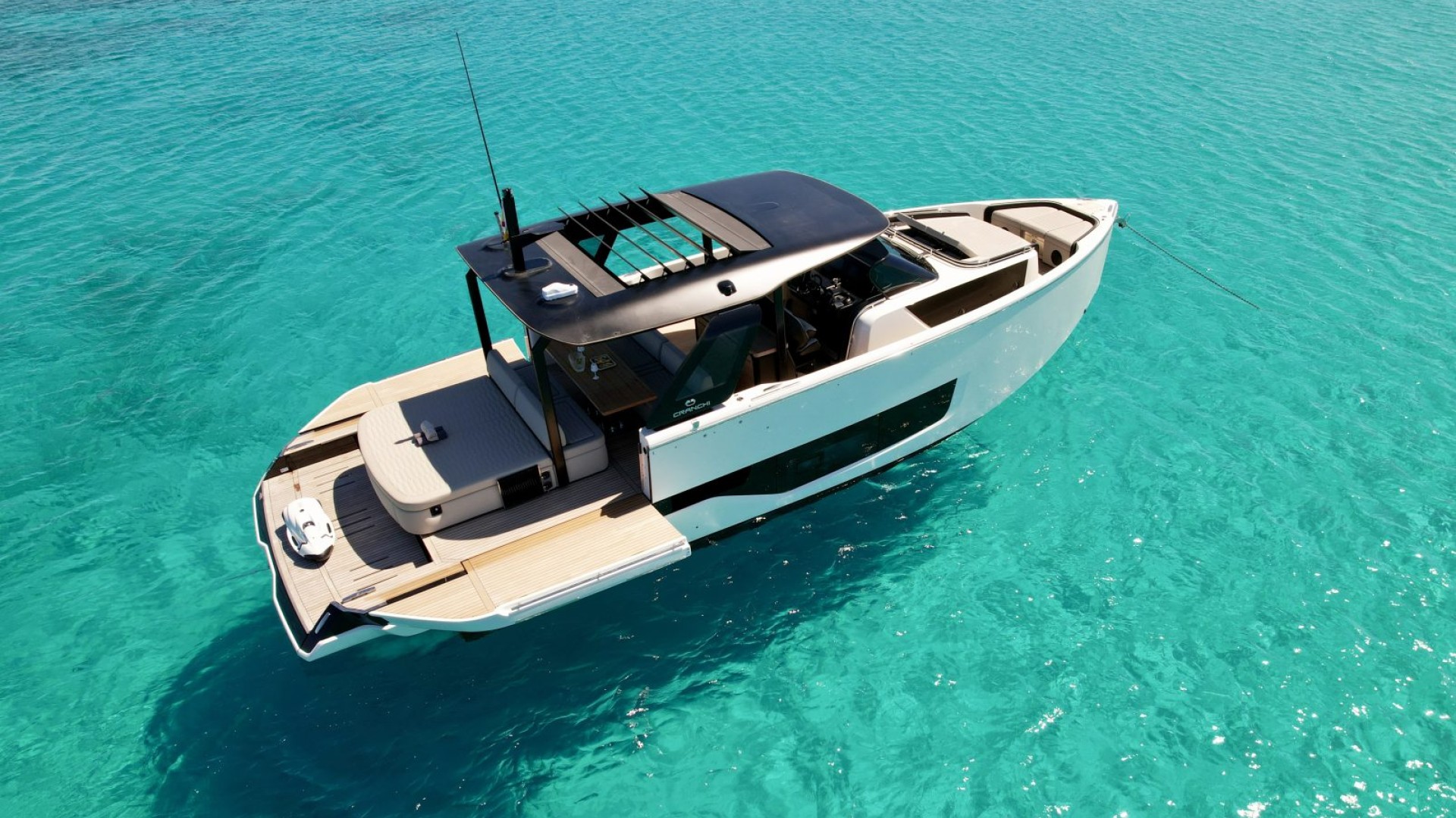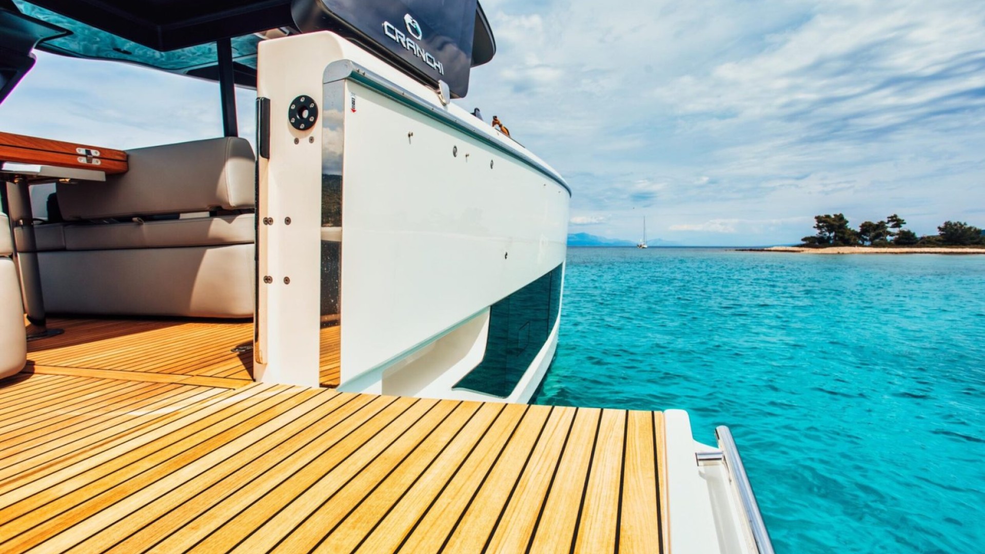 Ce modèle n’est pas seulement un bateau ; c’est un « beach club » privé flottant. Son design se distingue par des lignes épurées et une sophistication que seul le chantier naval Cranchi (Italie) sait imprimer depuis 1870.