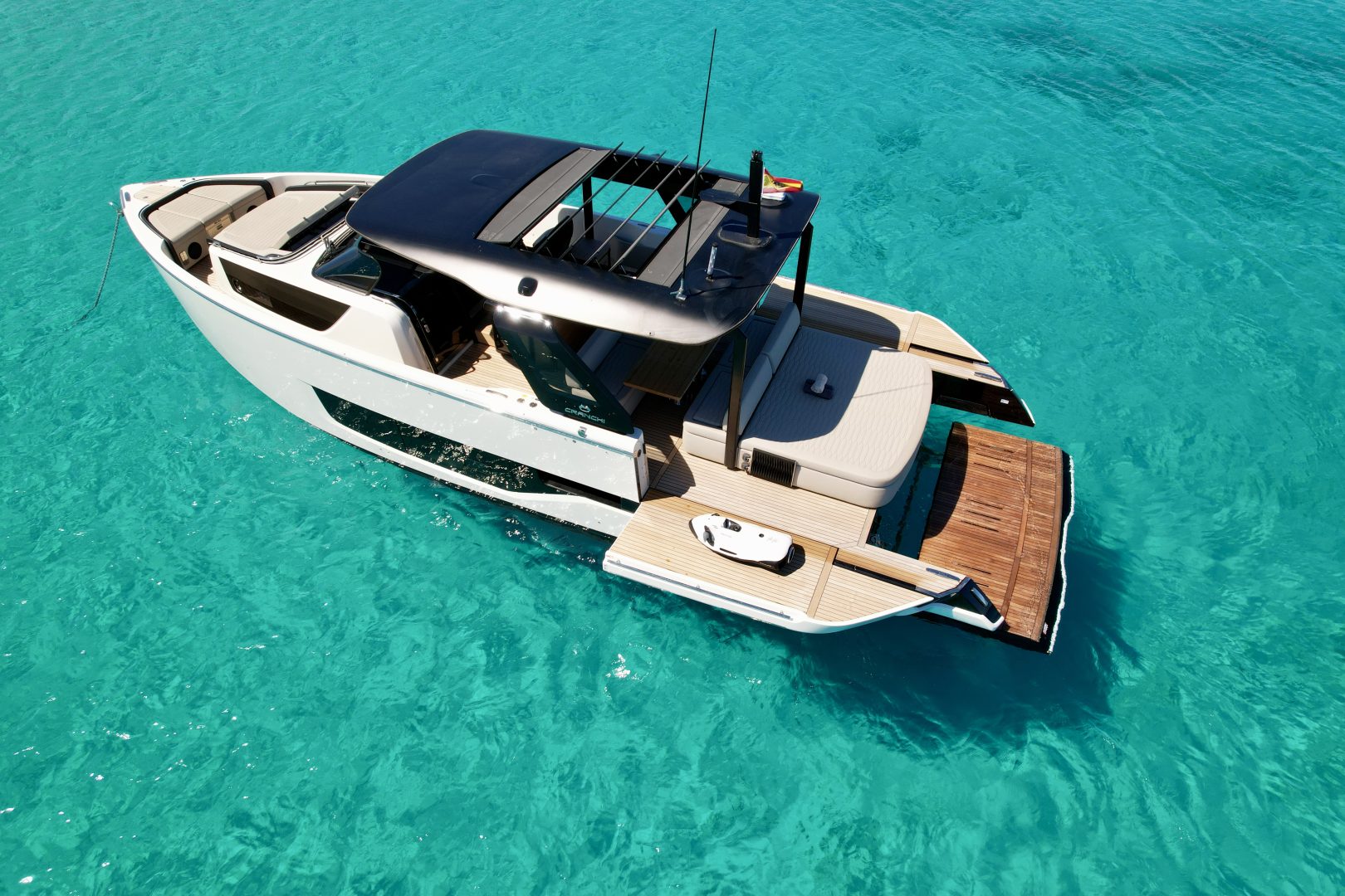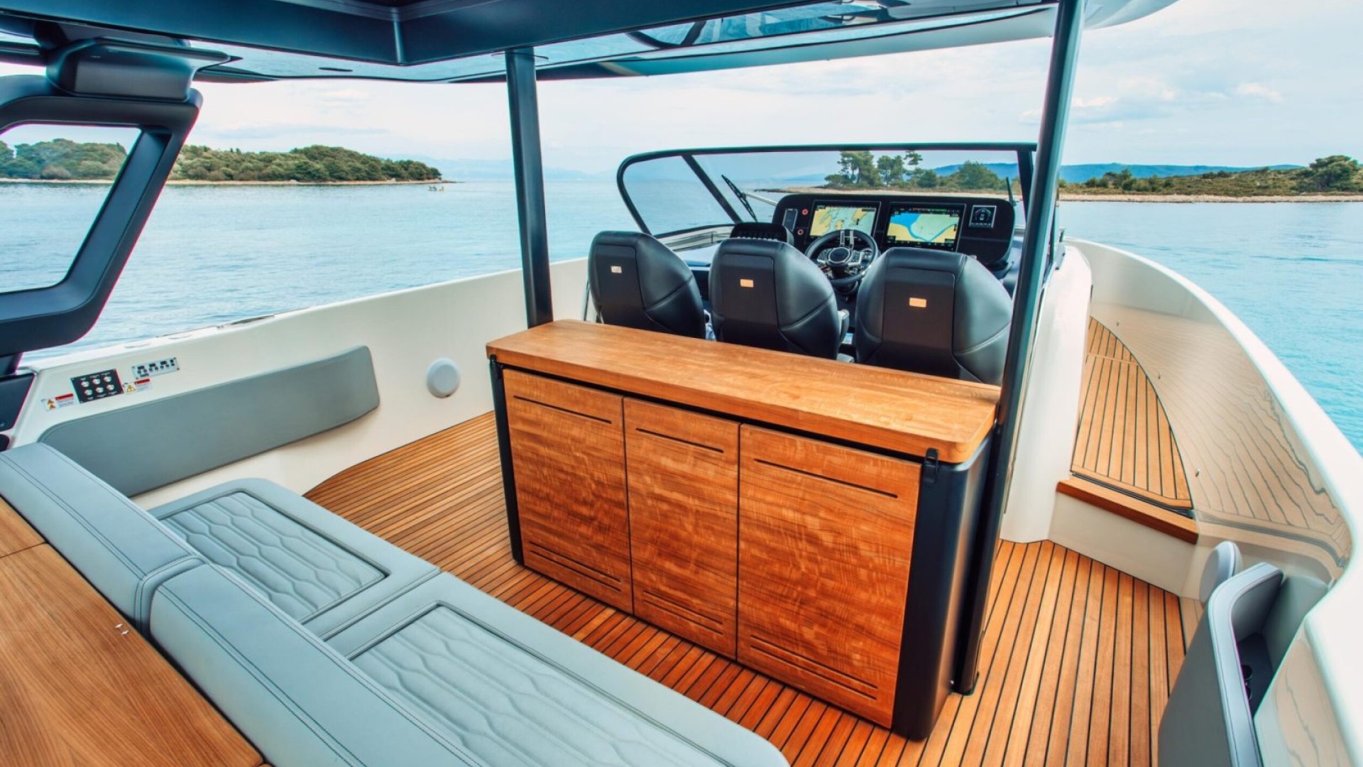 Le luxe dans chaque détail : De son imposant T-top en carbone offrant une ombre élégante à sa cuisine extérieure entièrement équipée, tout est conçu pour le plaisir en plein air.