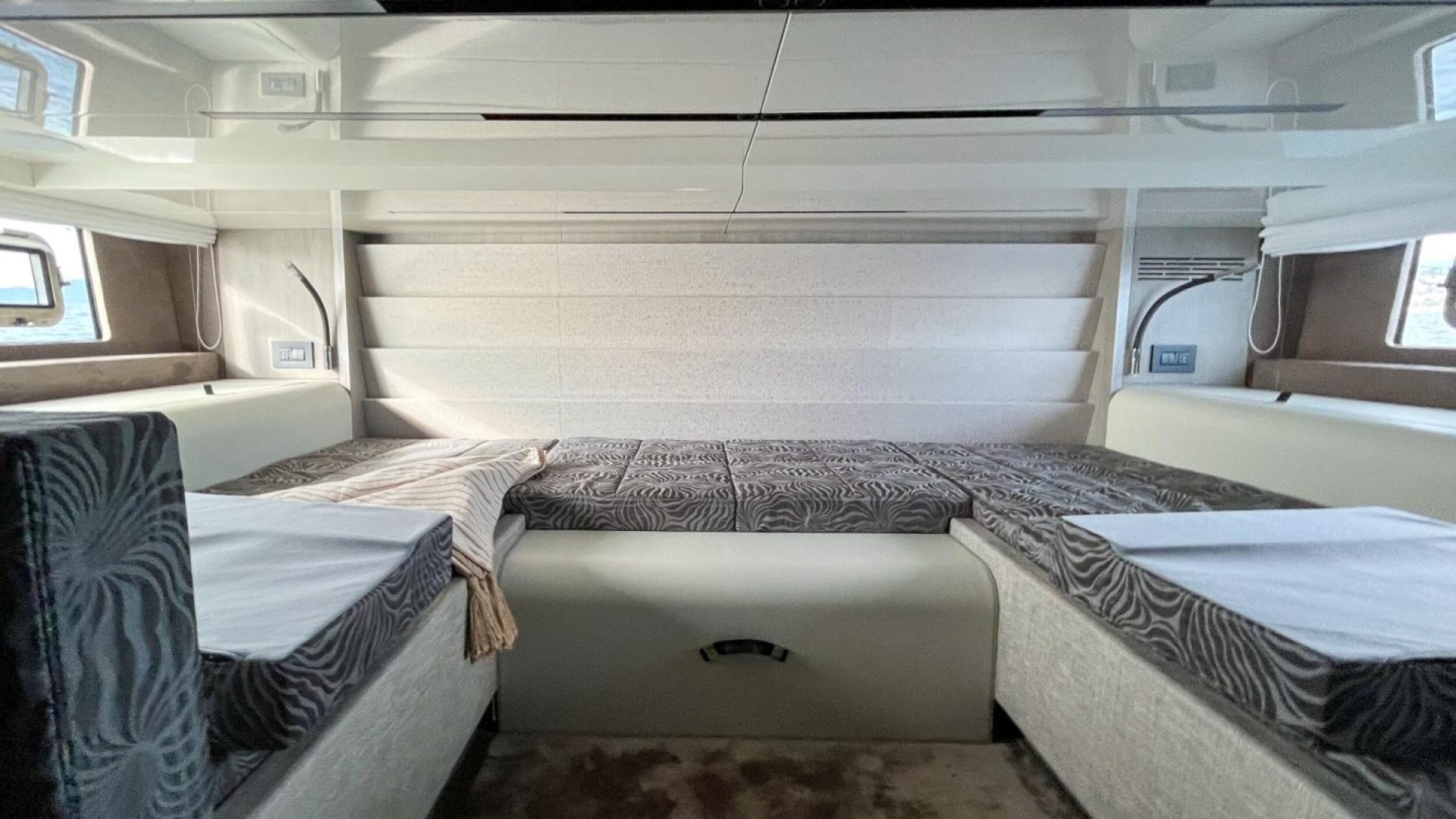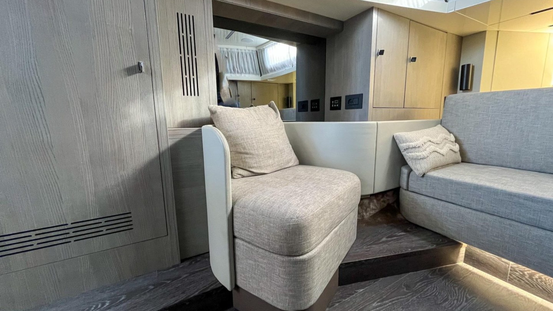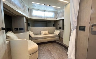 Un intérieur surprenant : Bien qu’il brille sur le pont, son intérieur offre un design minimaliste et chaleureux avec des finitions de haute qualité, idéal pour se reposer après une journée au soleil.