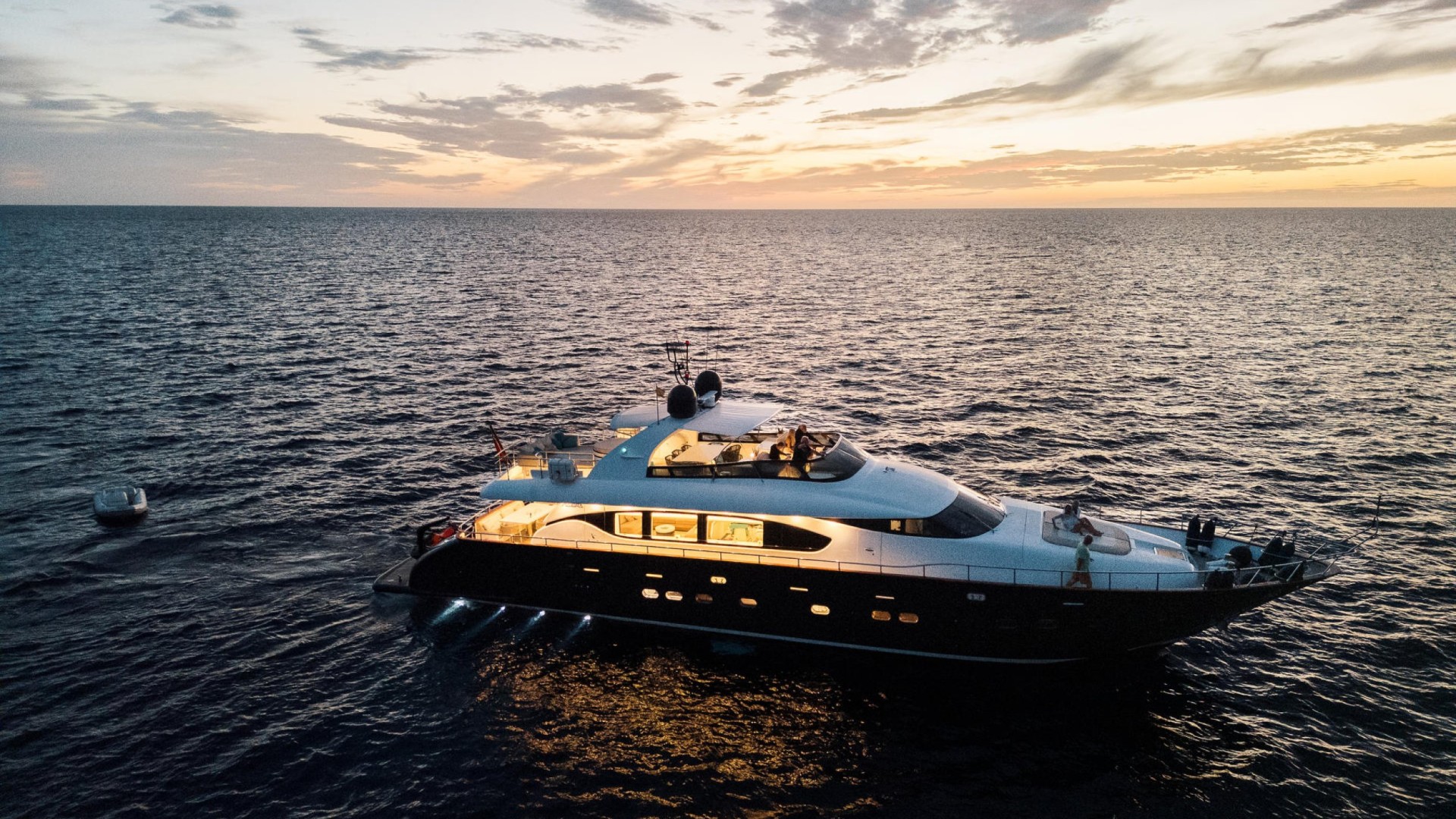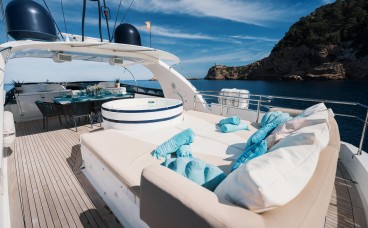Avec ses 28,5 mètres de longueur hors-tout, ce superyacht allie l’élégance classique italienne à un volume intérieur difficile à égaler dans sa catégorie. Sa coque bleu marine et son allure imposante en font le point de mire, qu’il soit au mouillage au large de Formentera ou entrant à la Marina Botafoch. C’est le choix ultime pour les familles ou les groupes exclusifs en quête d’intimité, de confort absolu et d’un service d’excellence.
