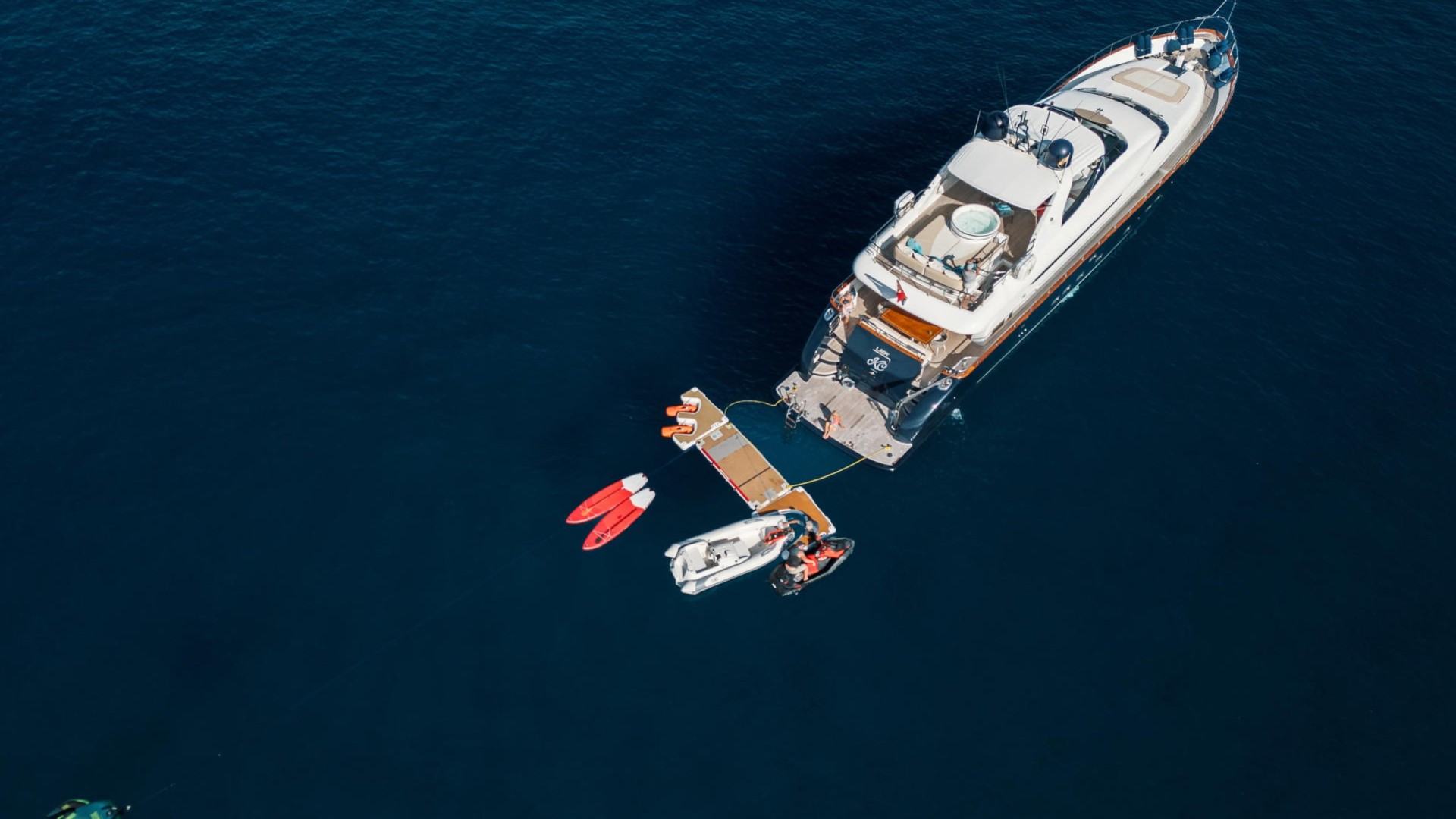 Équipements d’Aventure : Pour les passionnés de mer, il inclut une sélection premium de « toys » : Moto-fret (Jet ski), Seabob, planches de Paddle Surf et équipement de snorkeling, ainsi qu’une annexe (tender) pour des débarquements rapides.