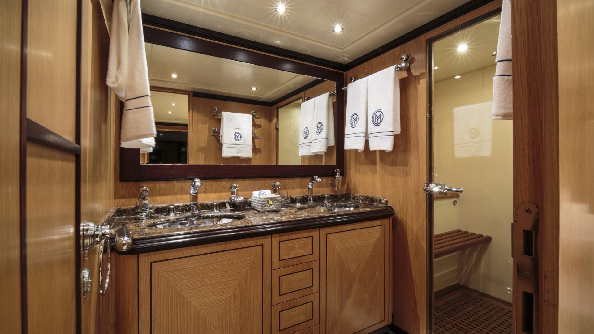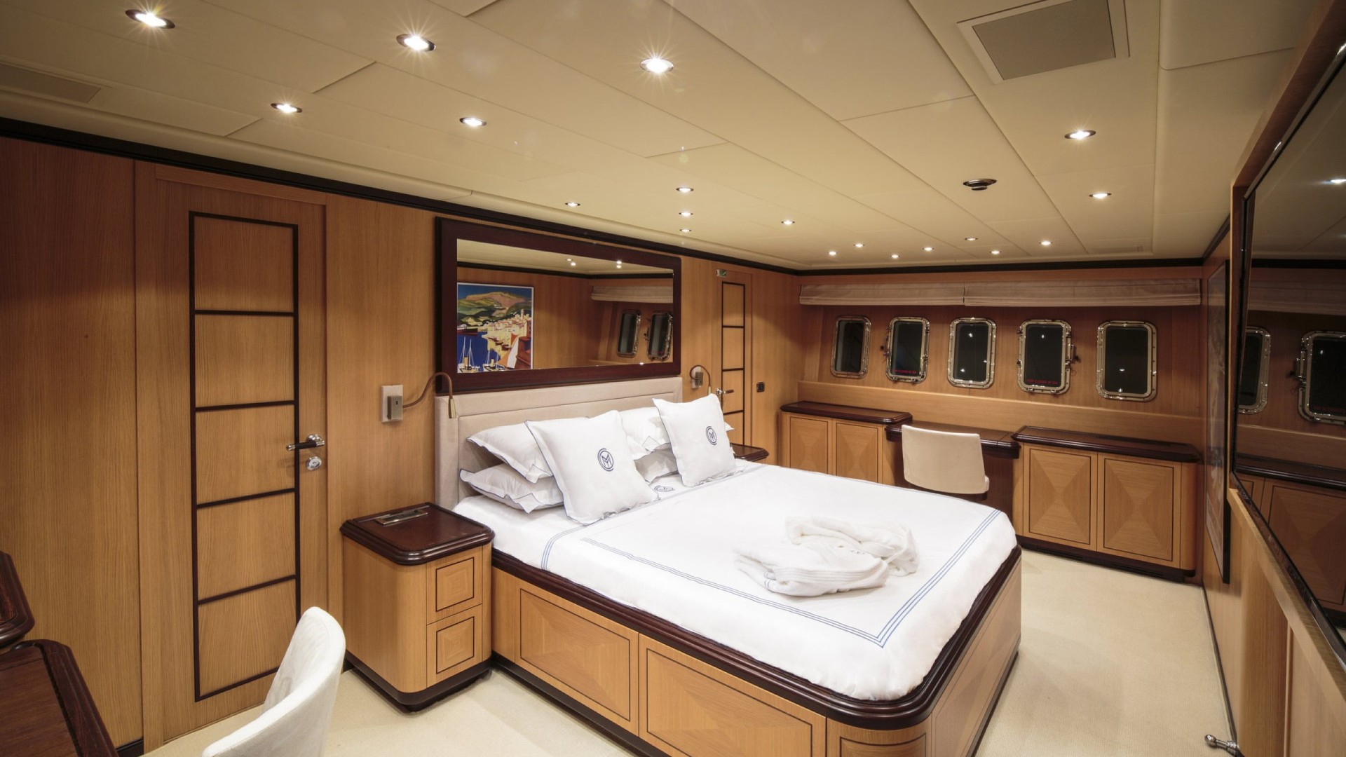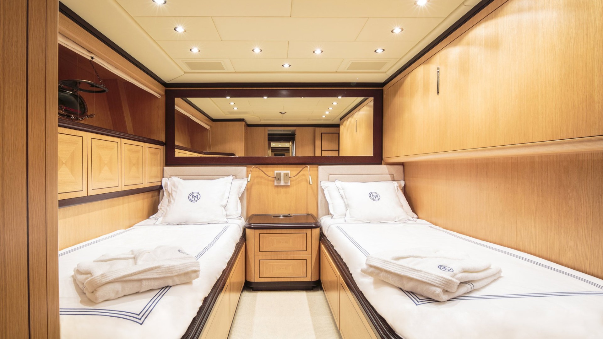 Suite Master avec Sauna : L’hébergement est de premier ordre, notamment une cabine Master sur toute la largeur (full-beam) qui comprend son propre sauna privé et un dressing, un oasis de bien-être rare sur des unités de cette longueur.