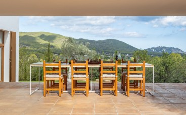 Au rez-de-chaussée du volume principal se trouve la cuisine, une buanderie, un WC et un grand salon avec cheminée. Au premier étage, la chambre principale avec un lit de 1,80 x 2,00 m et une chambre double avec deux lits. Les deux partagent une grande terrasse avec vue sur la mer. Chaque chambre a sa propre salle de bain ensuite. Dans le pavillon, il y a deux chambres doubles avec des lits de 1,80 x 2,00 m, chacune avec sa propre grande salle de bain. Cette partie de la maison a un studio de 25 m2. Toutes les chambres disposent d’armoires encastrées très ventilées. La maison est entourée de grandes terrasses dans toutes les orientations. Sur le côté sud, nous avons une salle à manger qui est idéale pour profiter des soirées d’été.