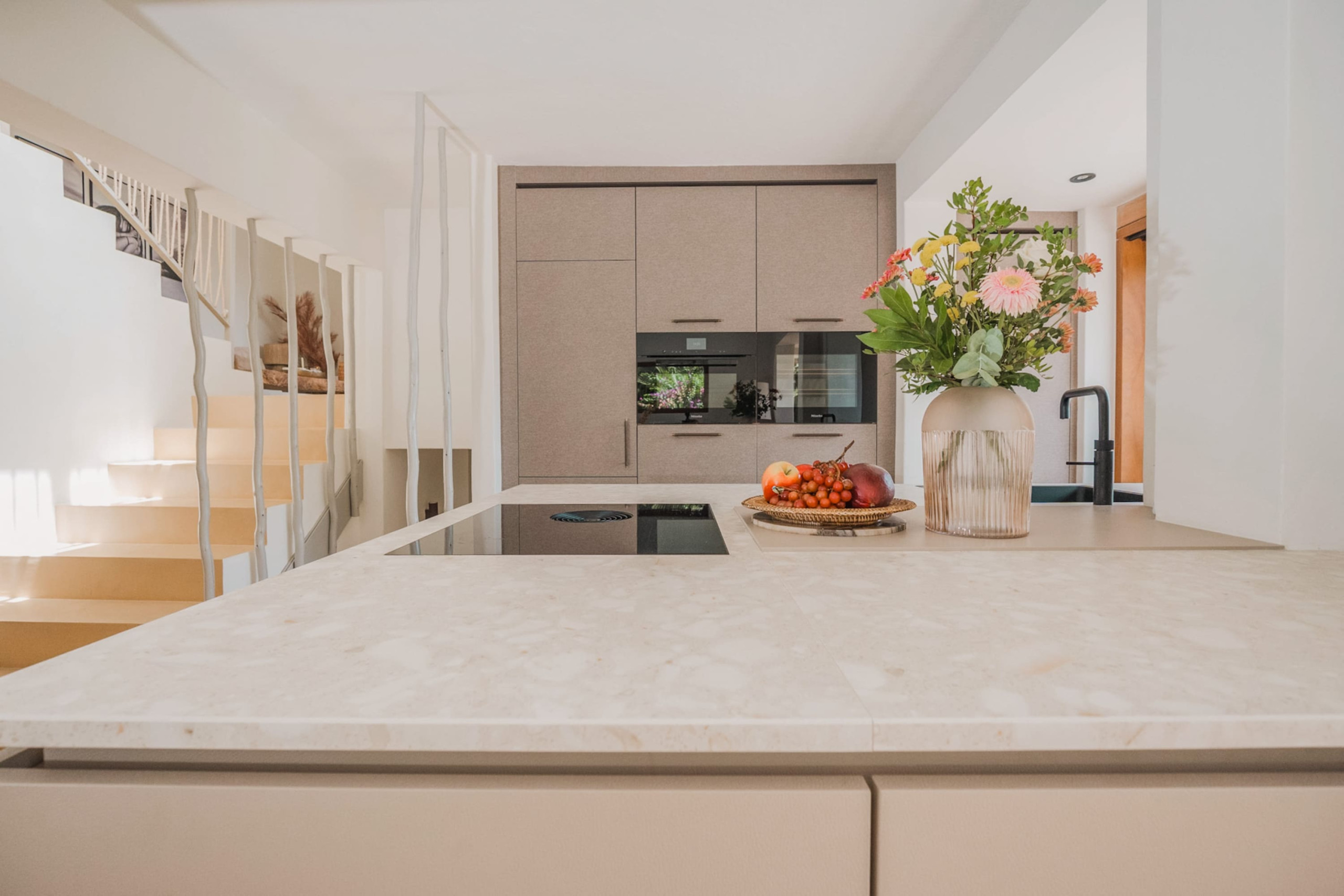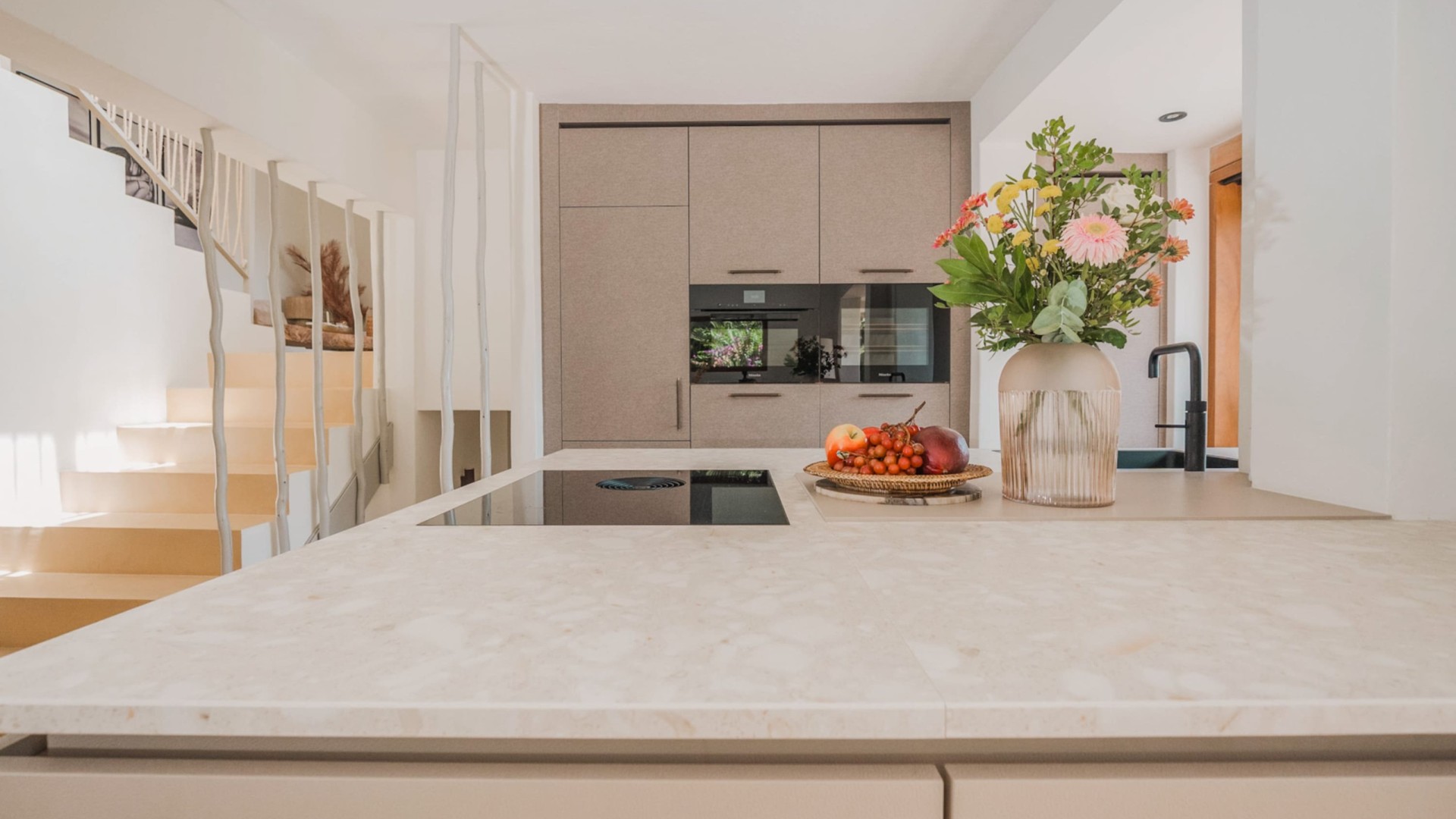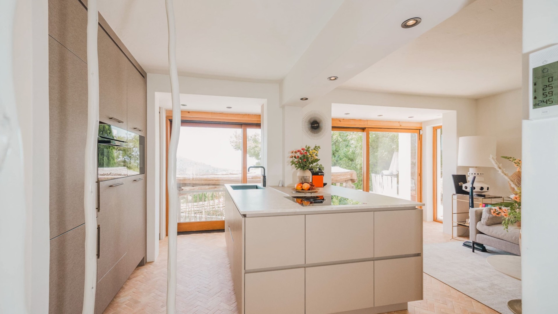 In the vitroceramic kitchen, refrigerator, microwave, oven, freezer, washing machine, dishwasher, dishes/cutlery, kitchen utensils, frying pan and kettle are provided.