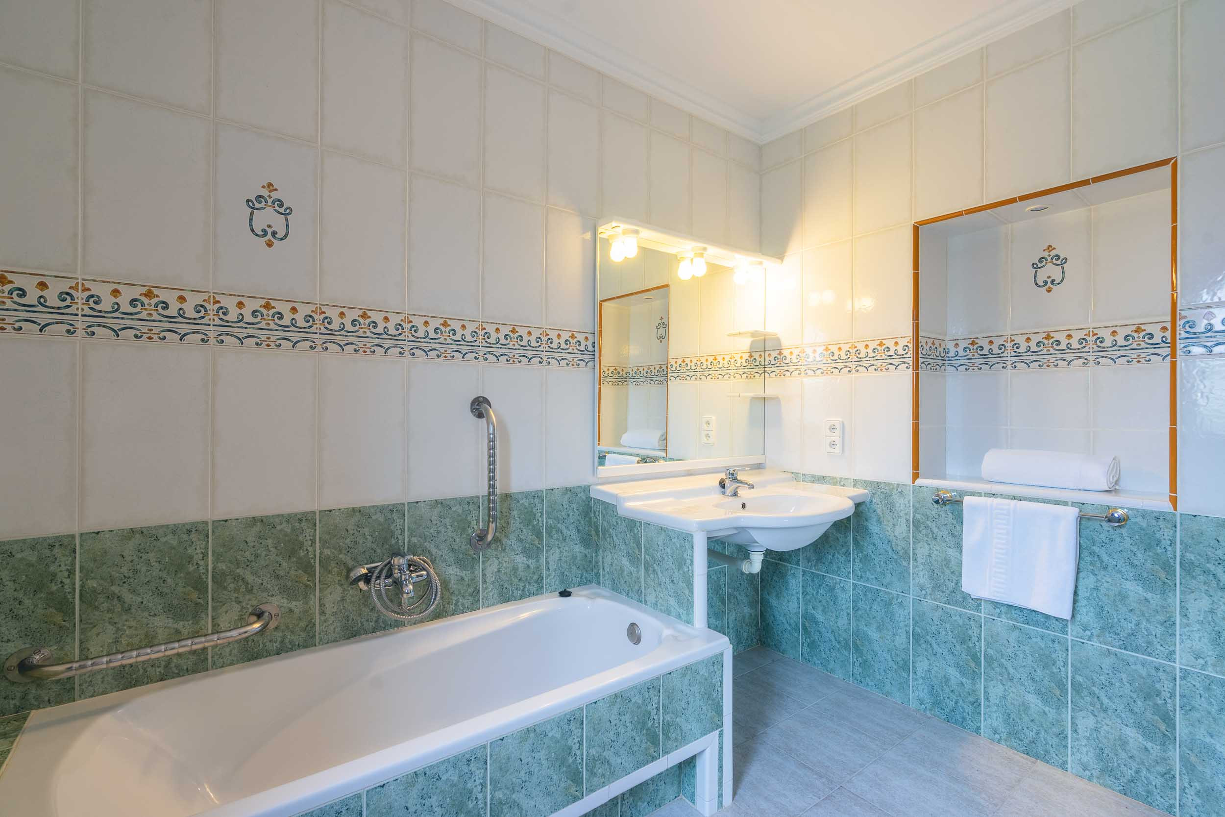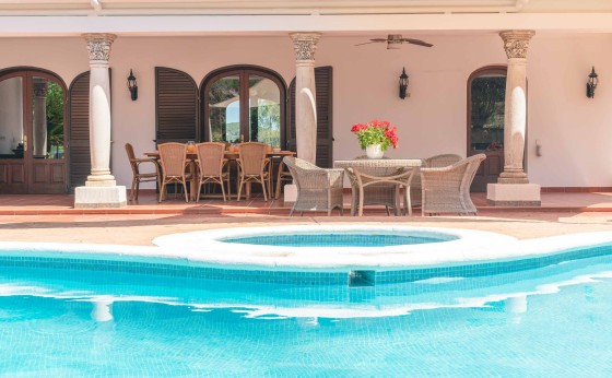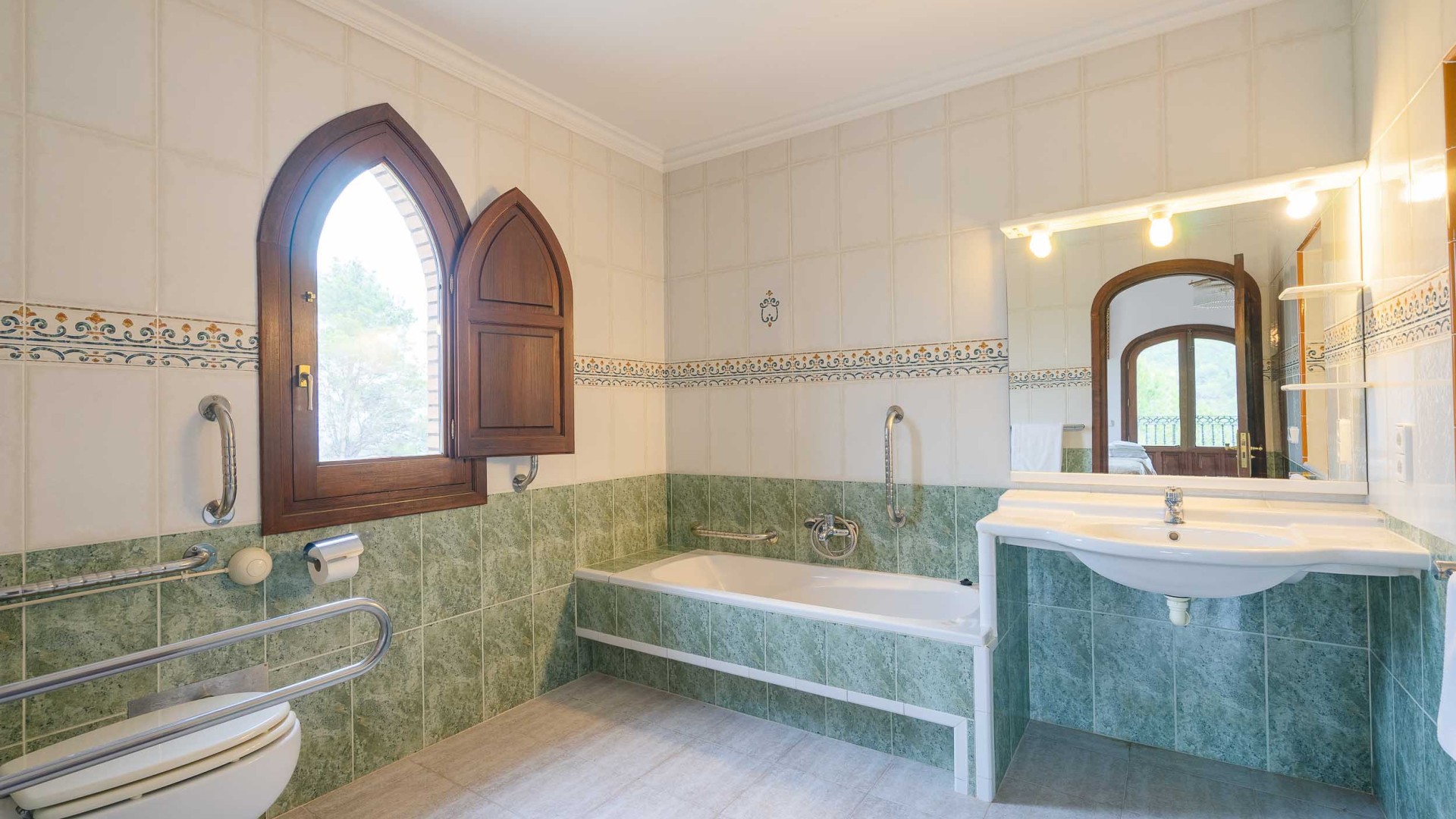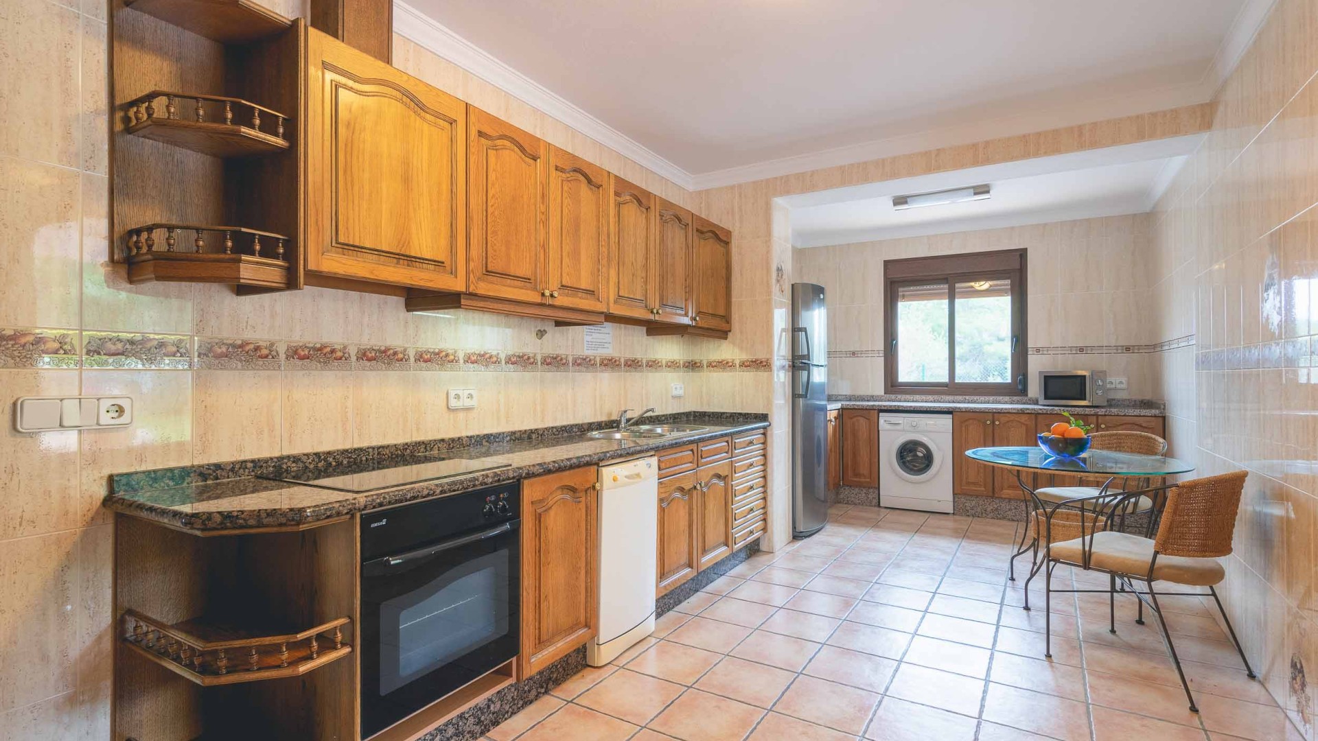 The villa has 3 double bedrooms with bathroom, all of them spacious. Three bathrooms, a large fully equipped kitchen and a cozy living room.