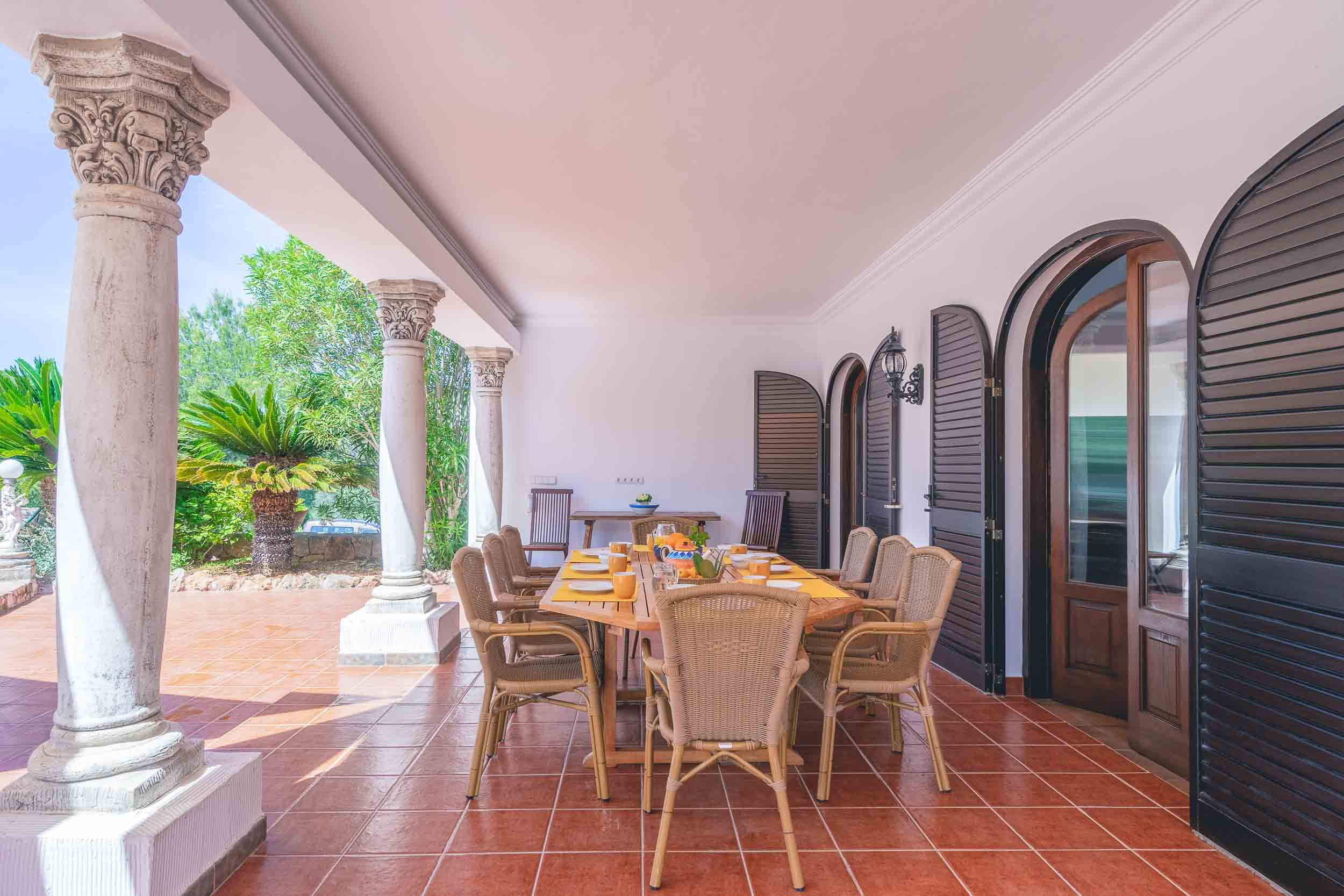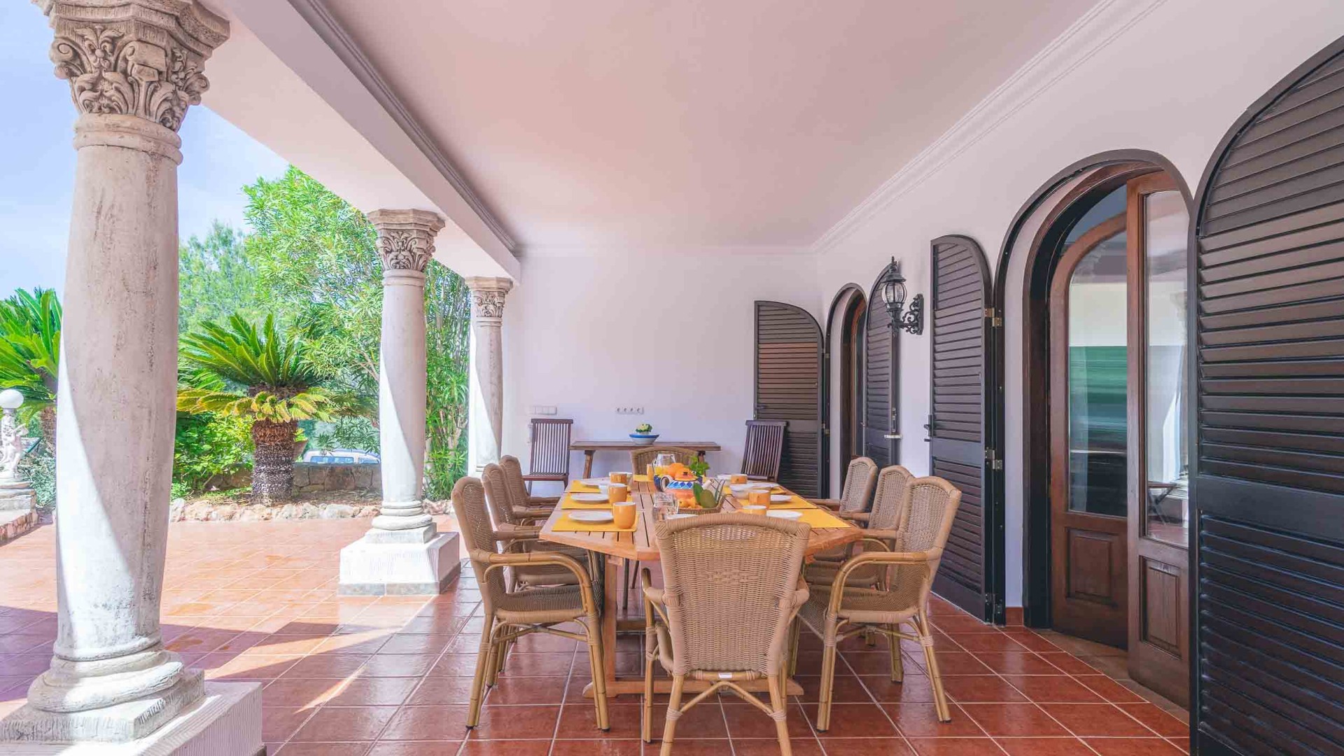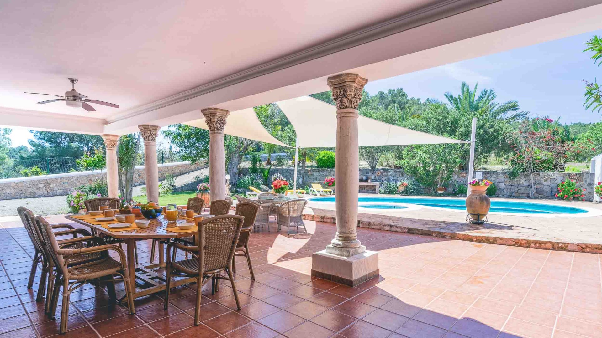 The porch connects the interior part with the exterior part of the house, leading to a large terrace and the pool.