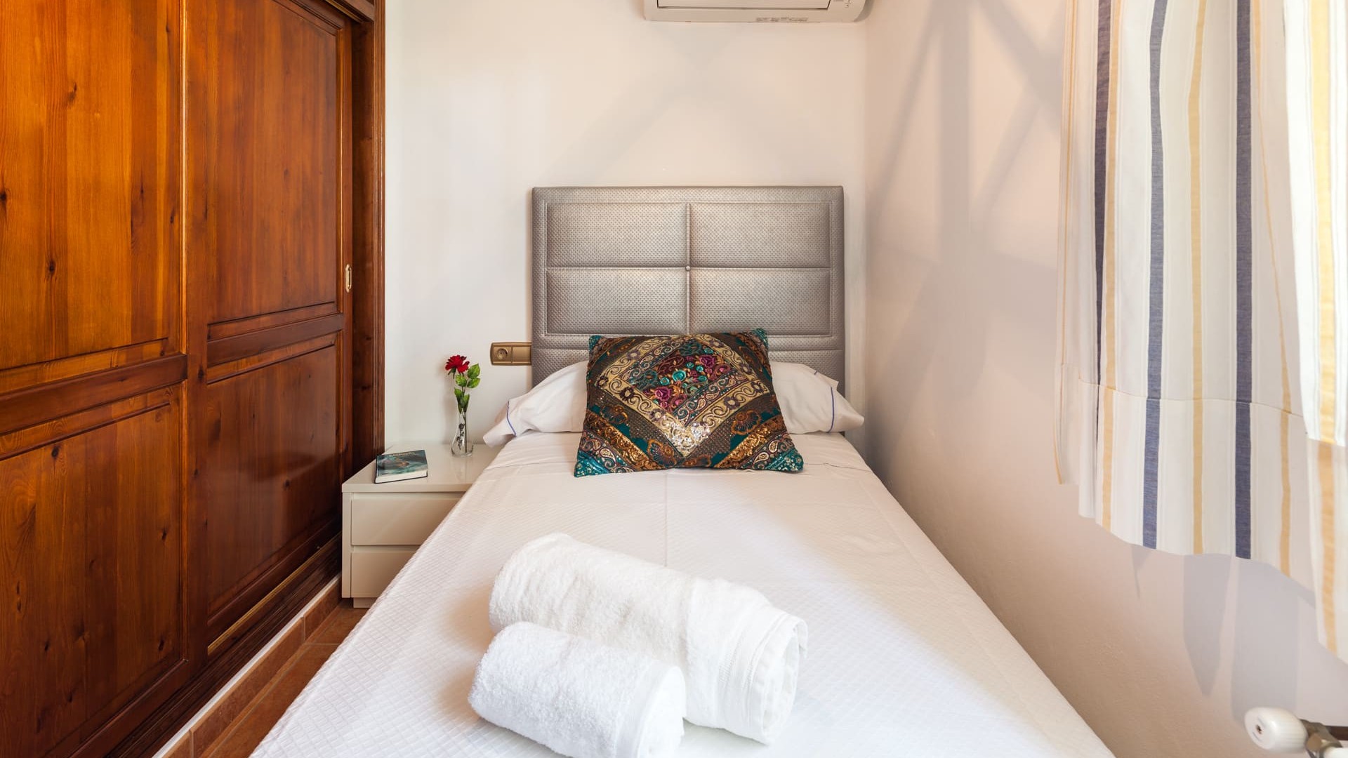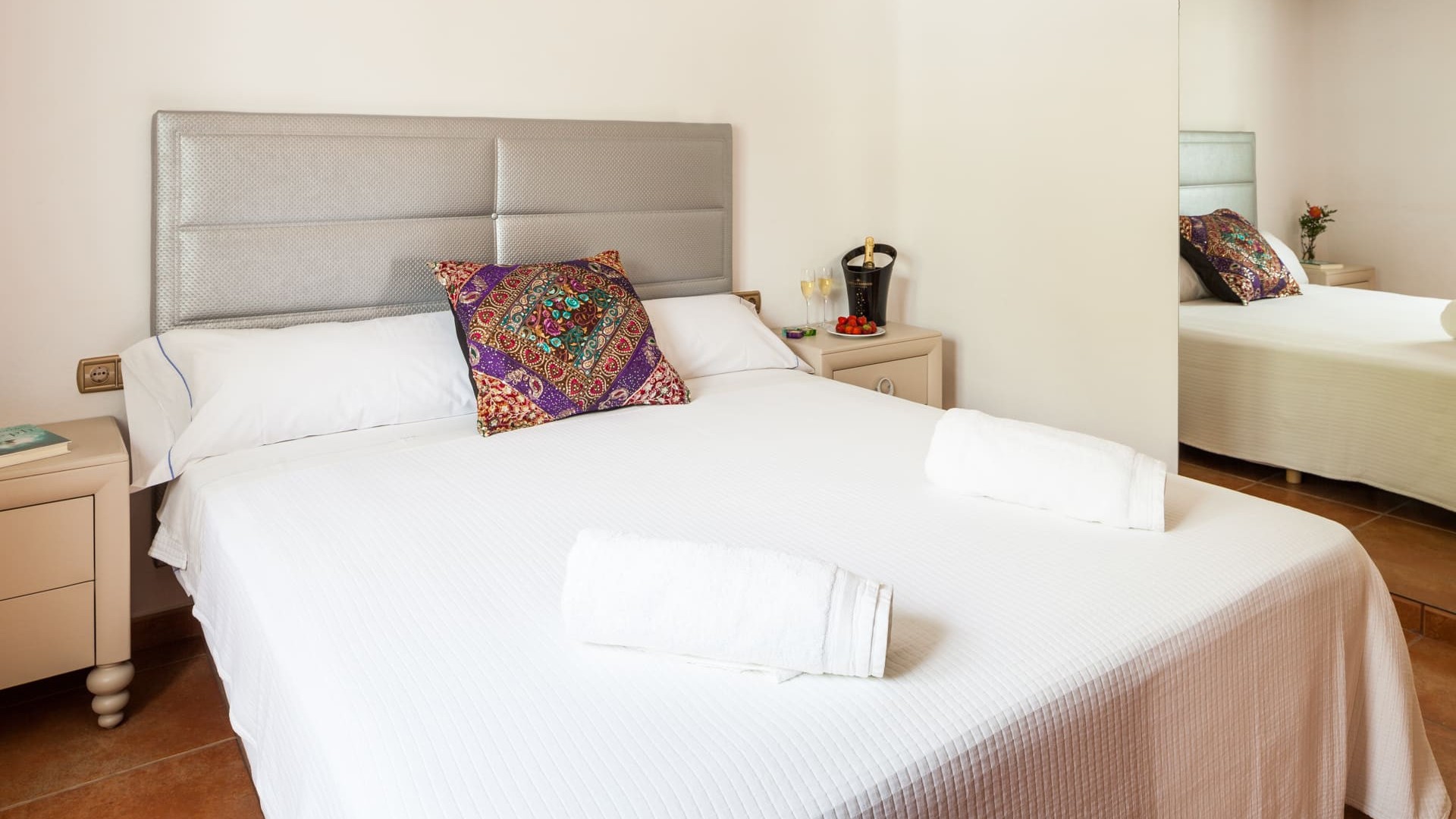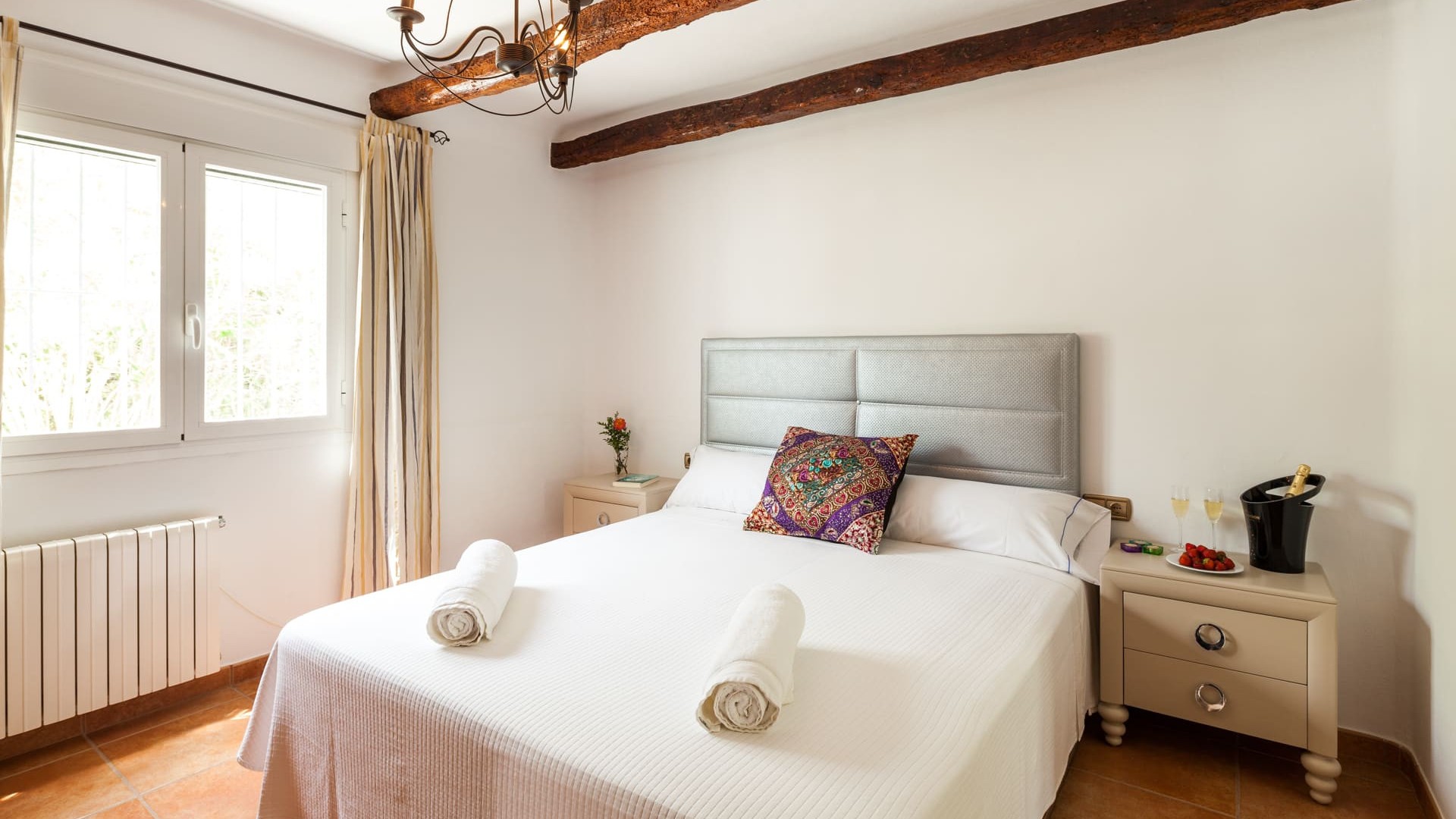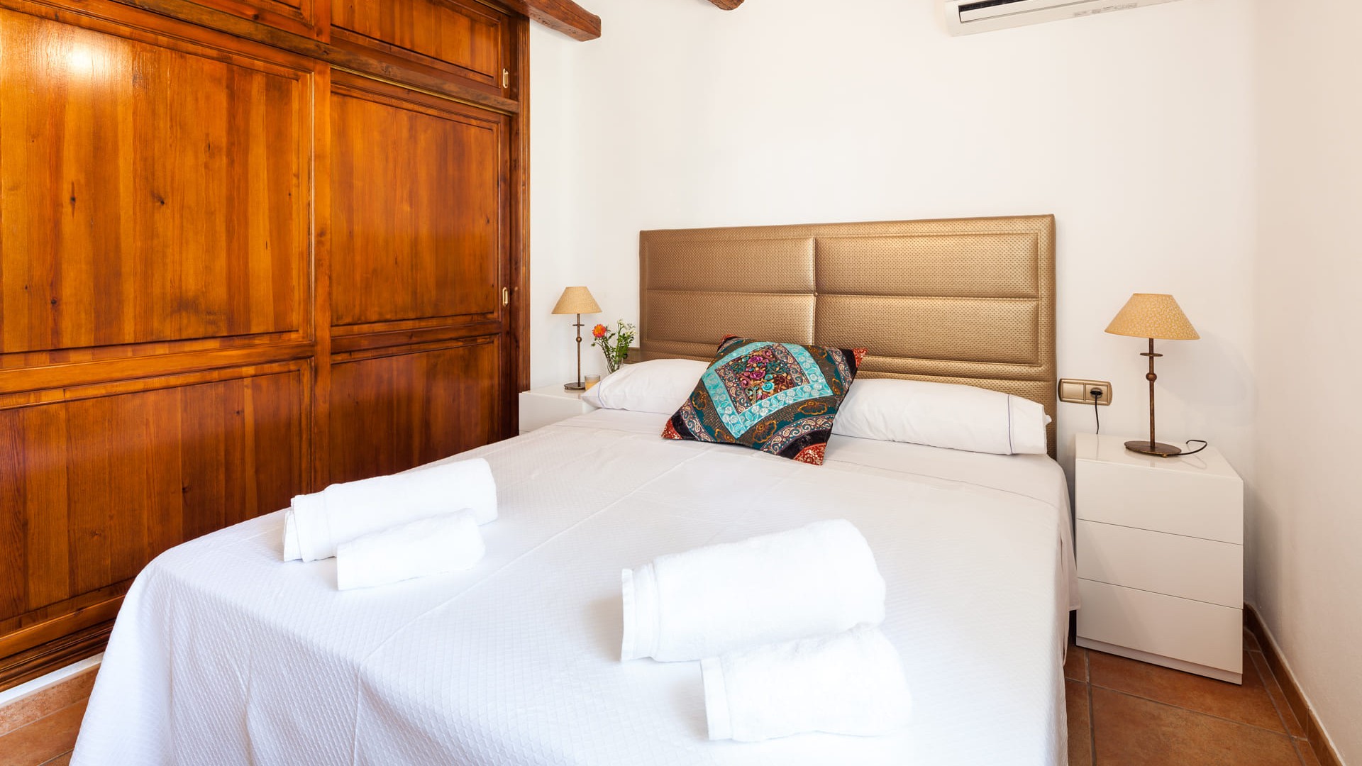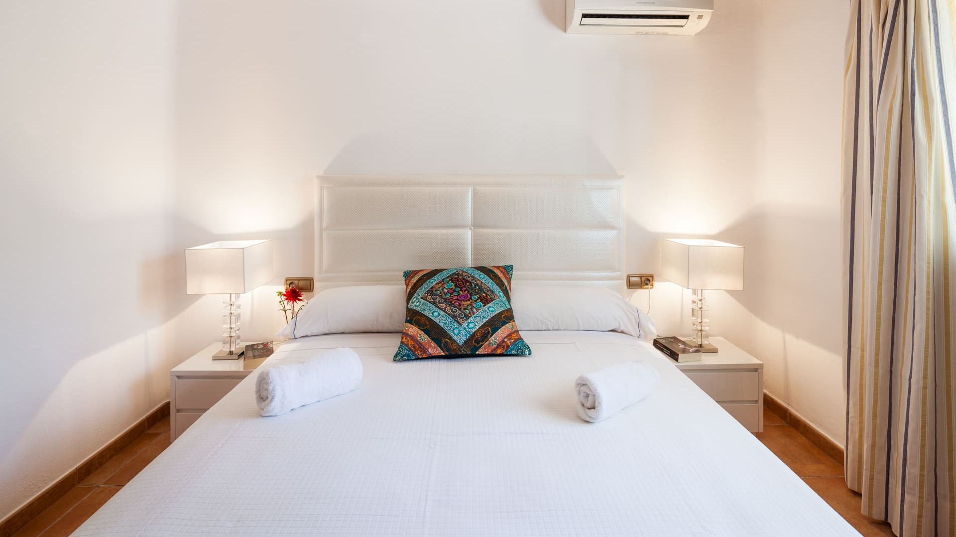 • Master bedroom: double bed, air conditioning, large wardrobe, safe and en-suite bathroom with bathtub