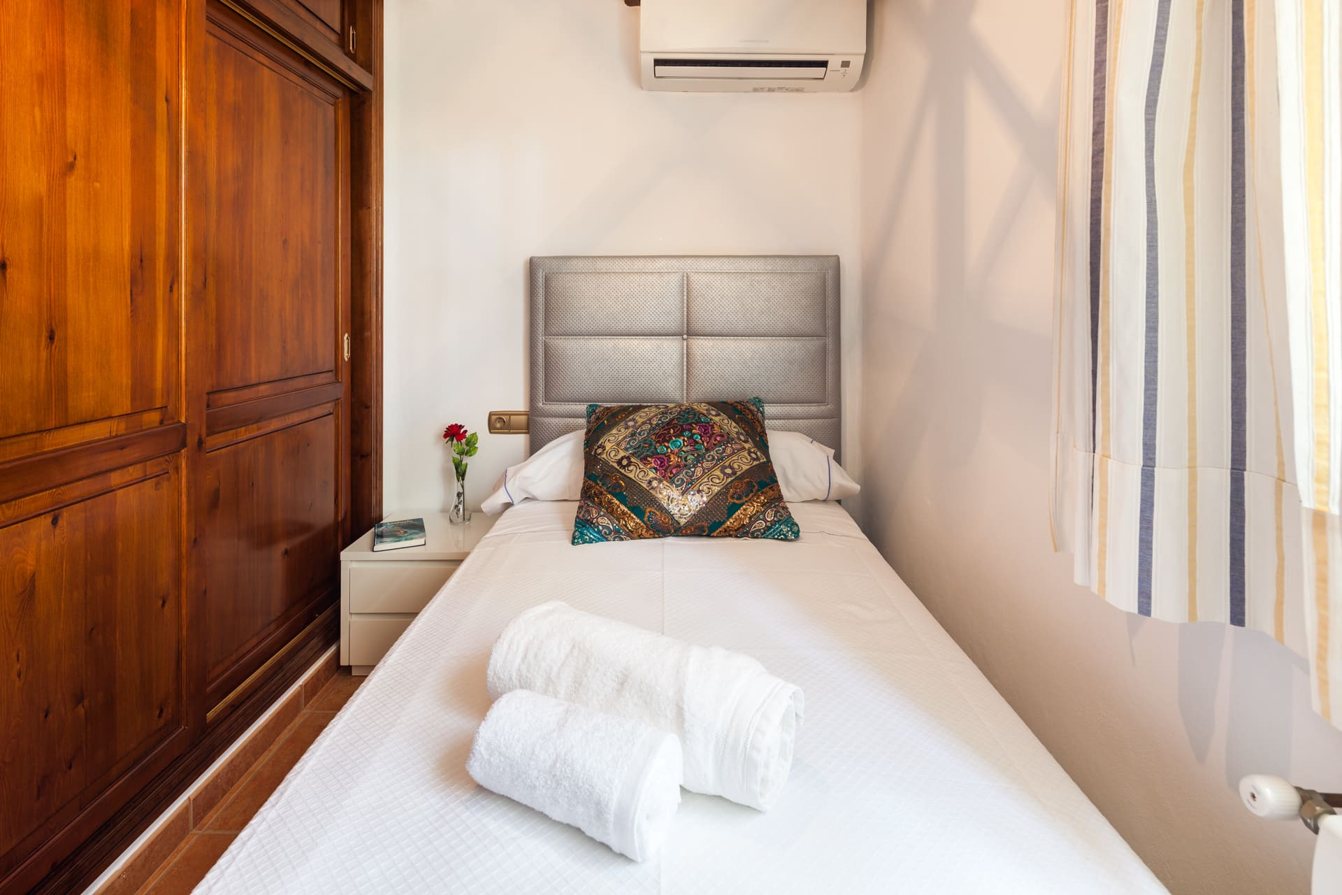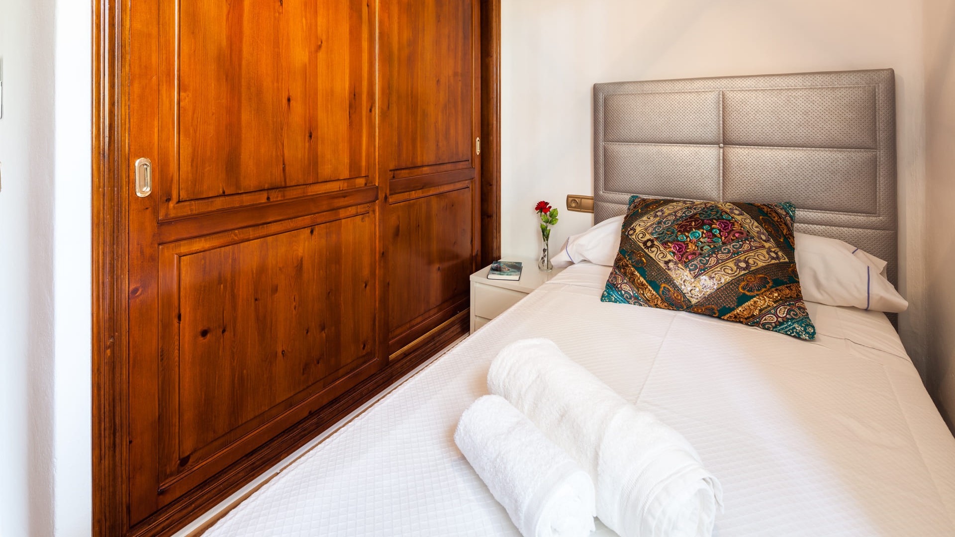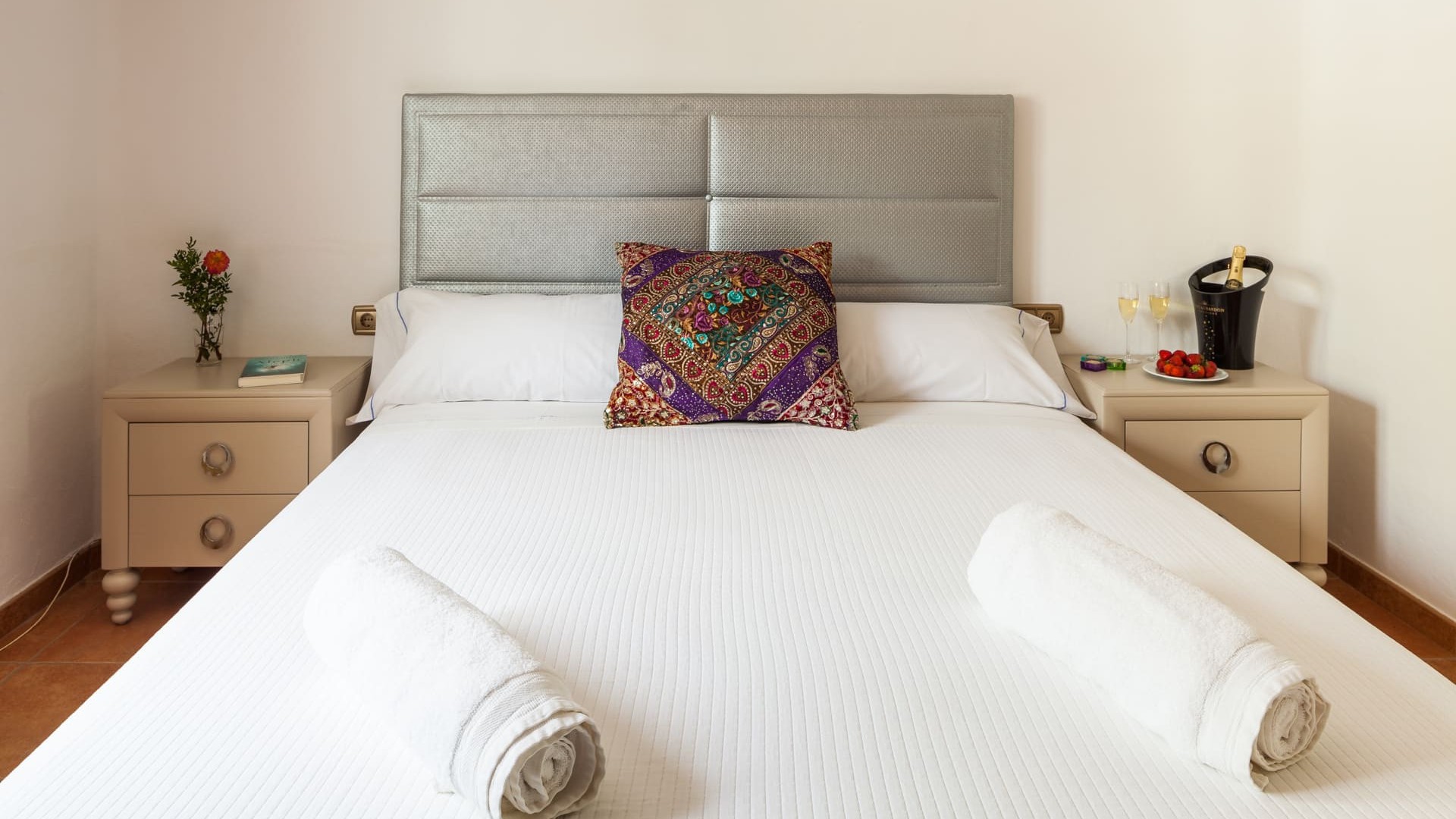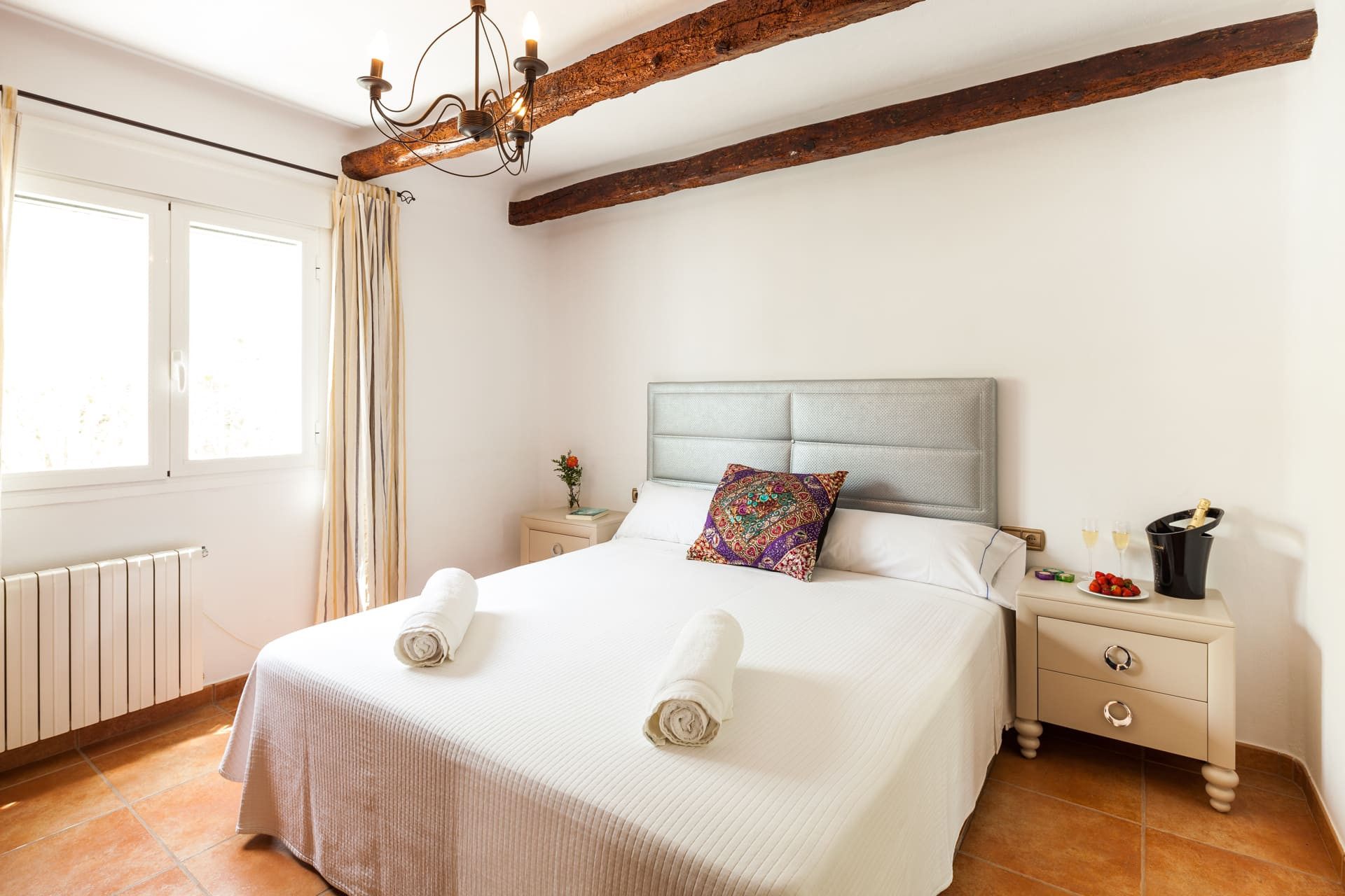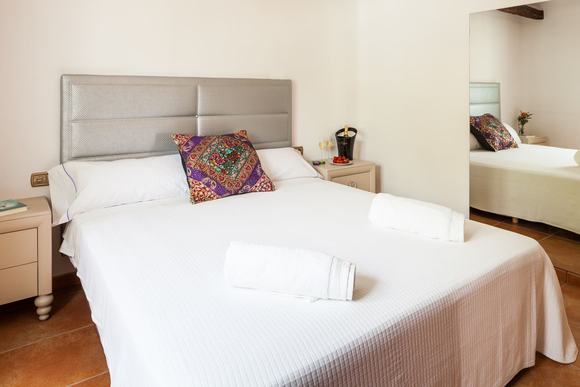 • Master bedroom: double bed, air conditioning, large wardrobe, safe and en-suite bathroom with bathtub