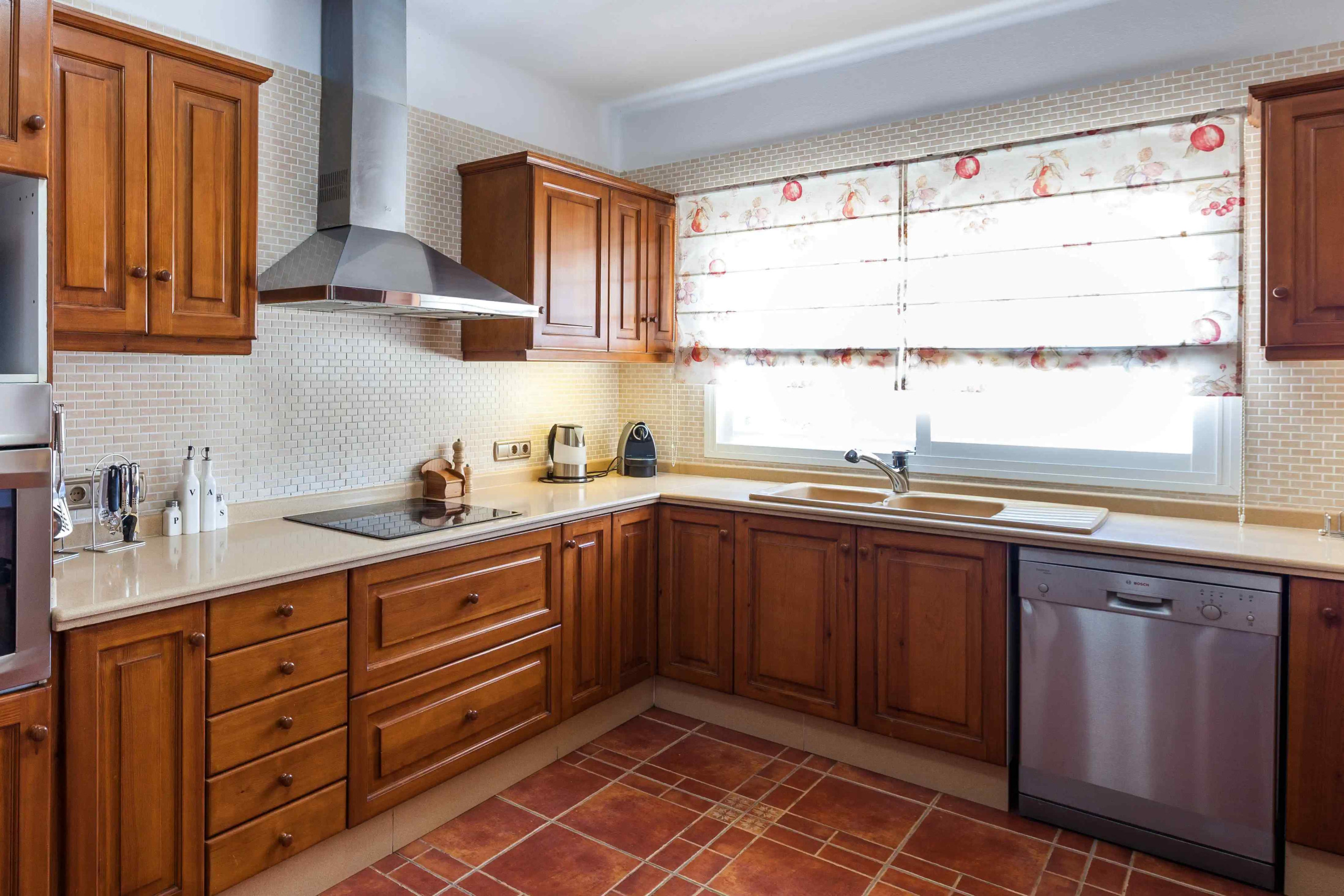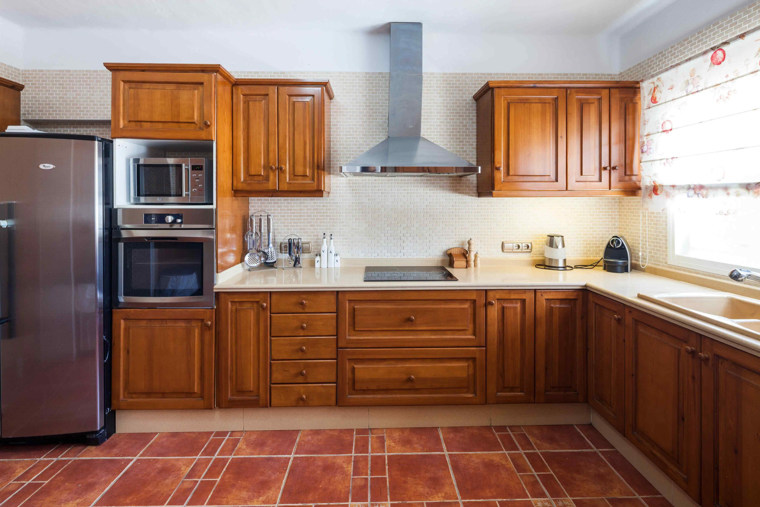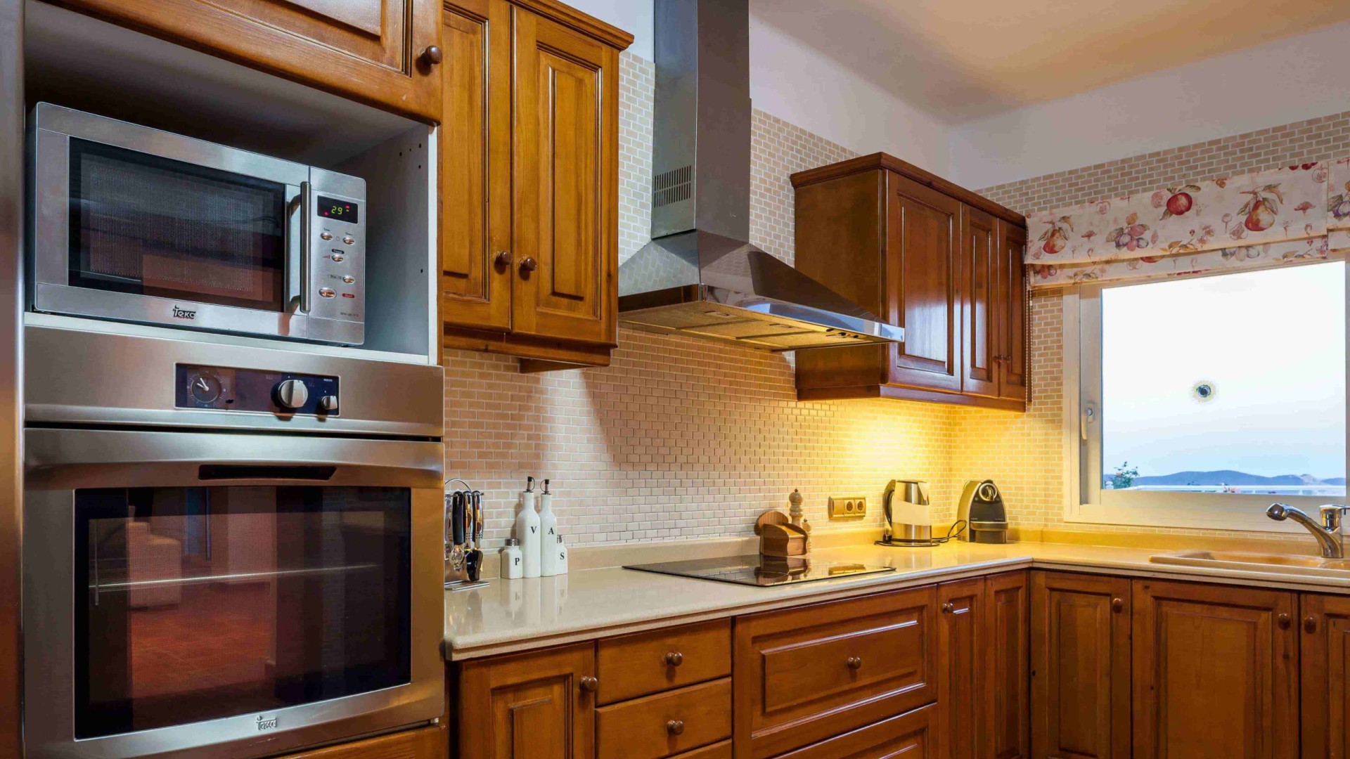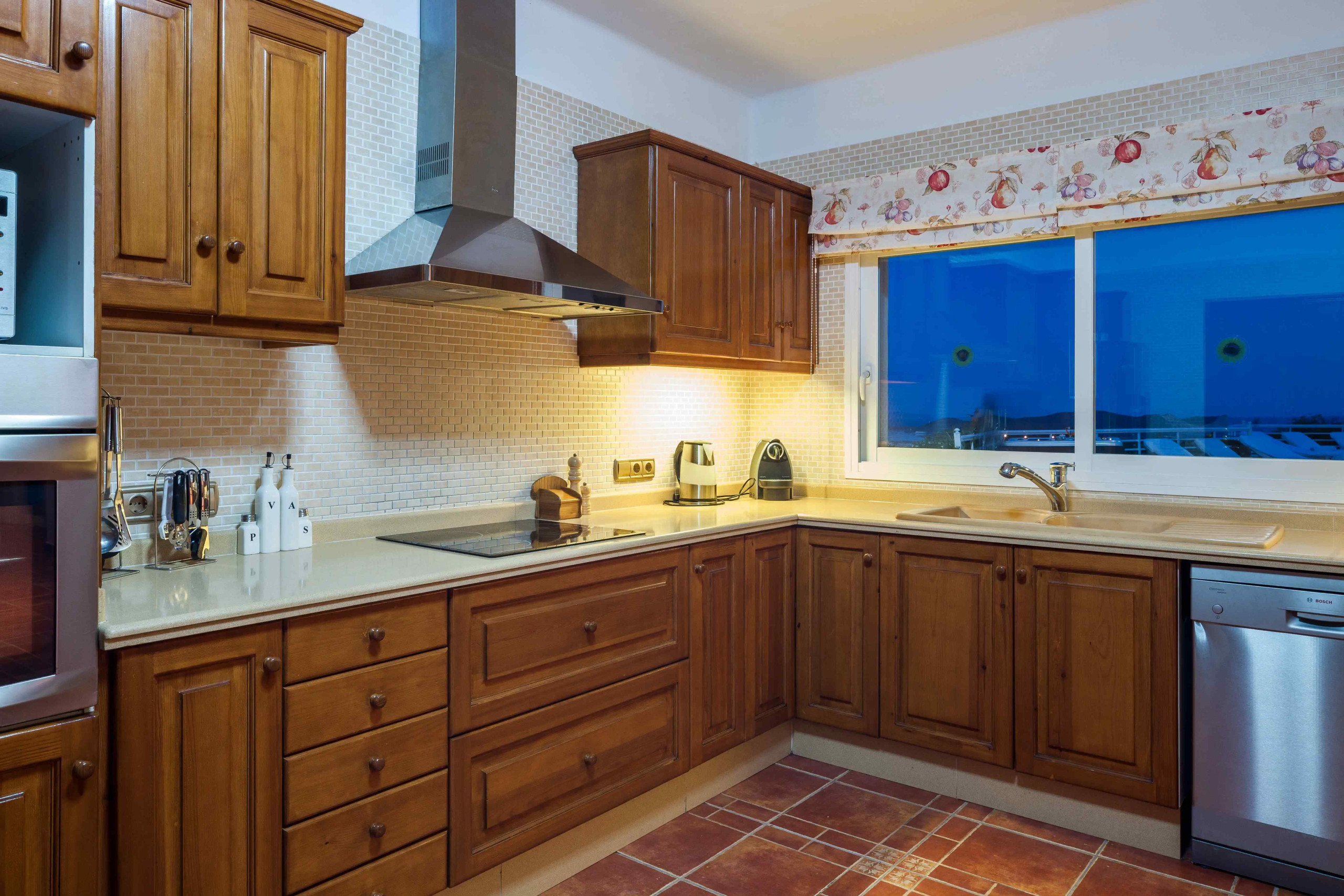 In the vitroceramic kitchen, refrigerator, microwave, oven, freezer, washing machine, dishwasher, dishes/cutlery, kitchen utensils, coffee machine, toaster and kettle are provided.