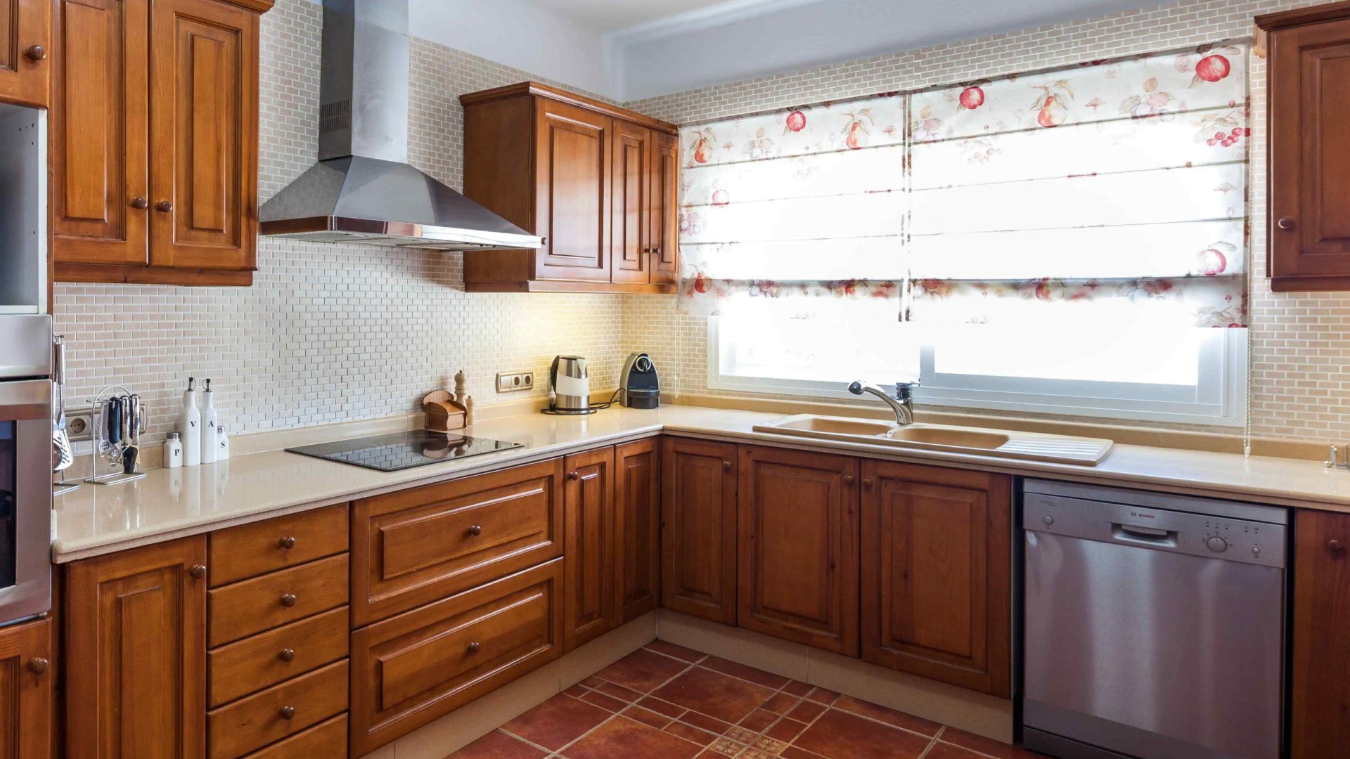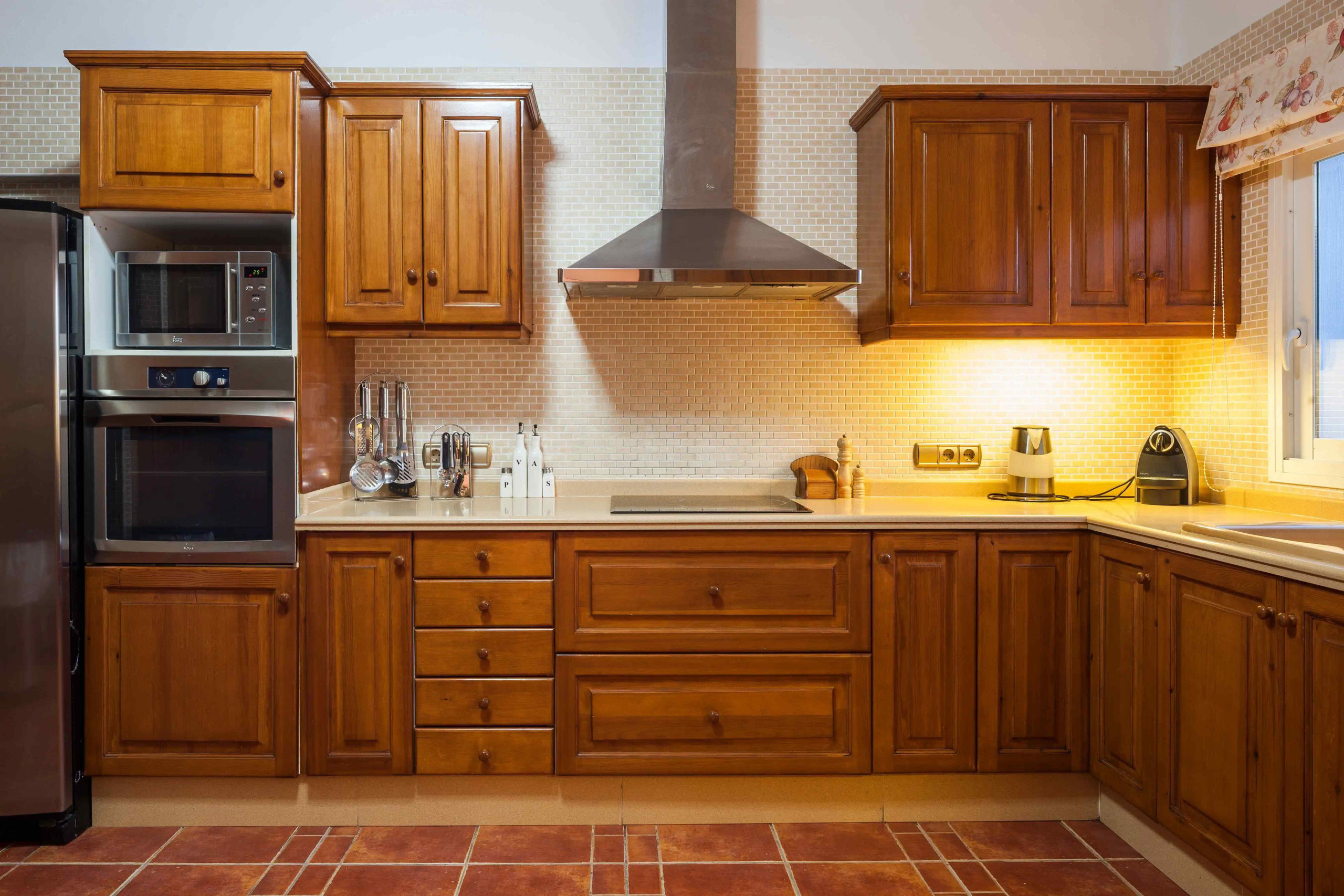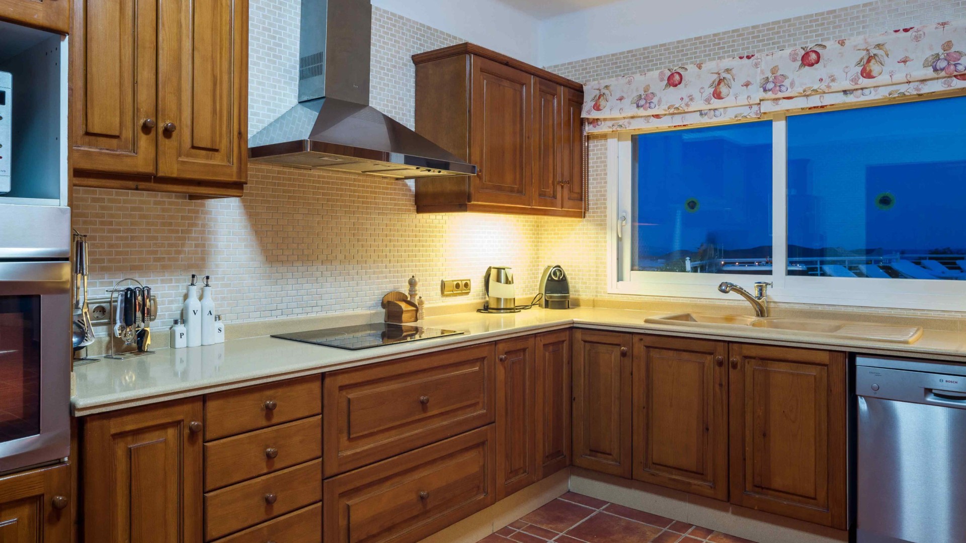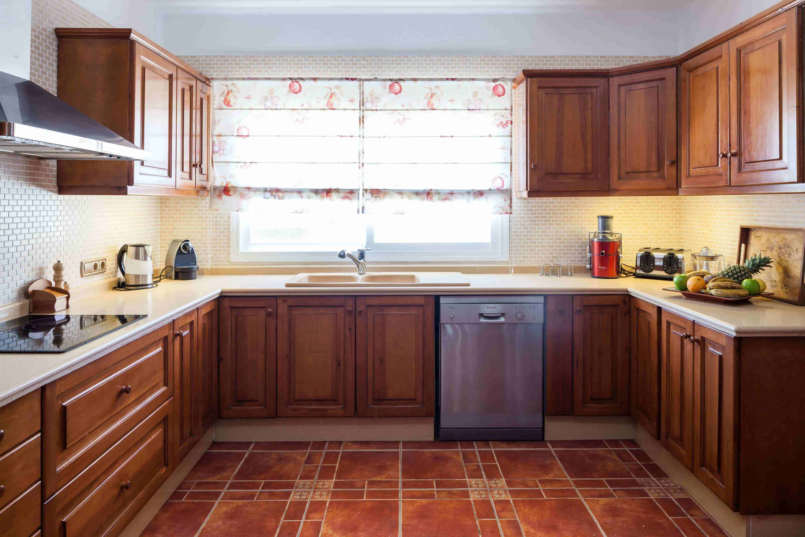 In the vitroceramic kitchen, refrigerator, microwave, oven, freezer, washing machine, dishwasher, dishes/cutlery, kitchen utensils, coffee machine, toaster and kettle are provided.